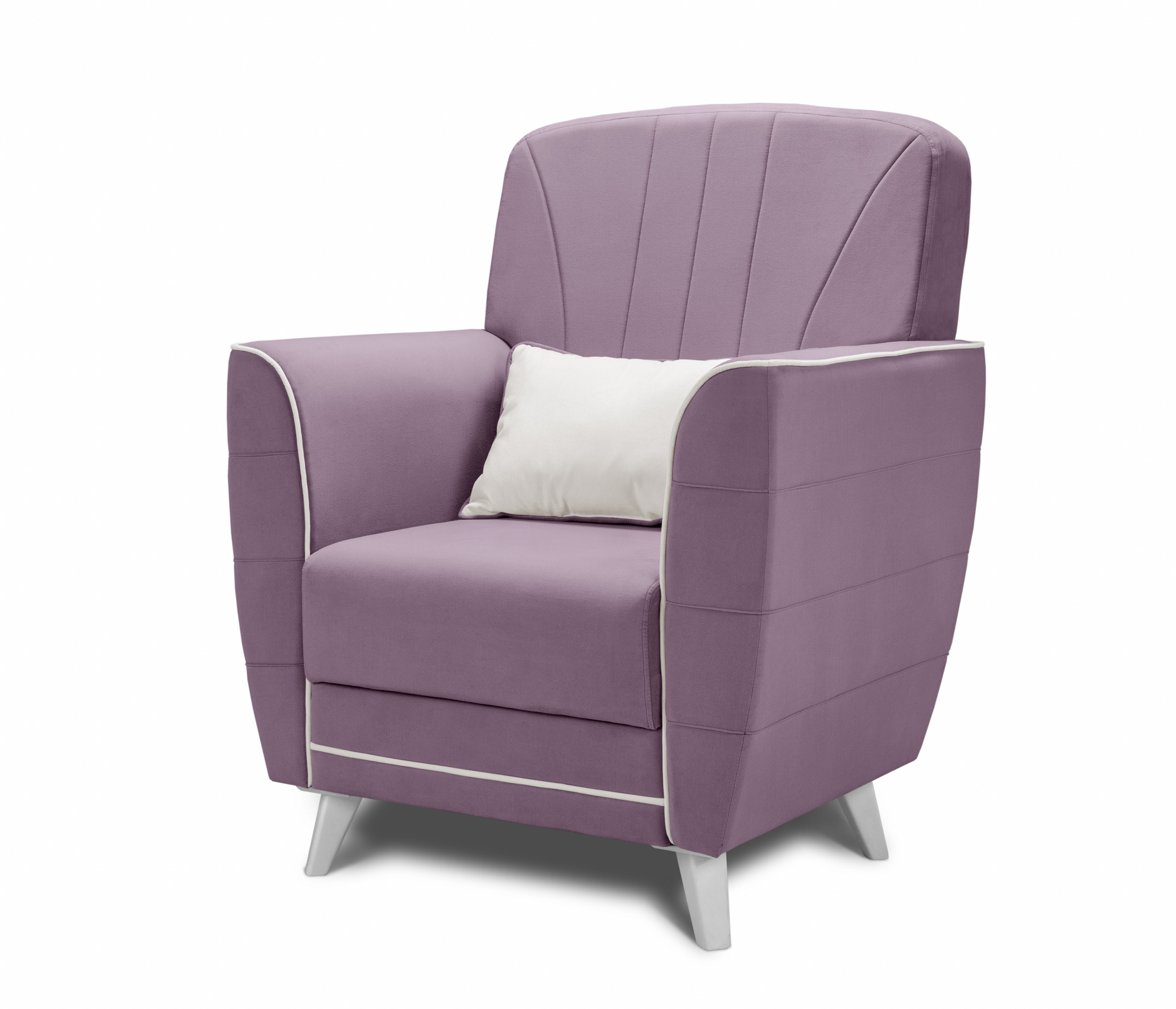 Обивка кресла выполнена в велюре с отличными техническими характеристиками. Контрастный кант и декоративная прострочка на спинке делает модель привлекательной.