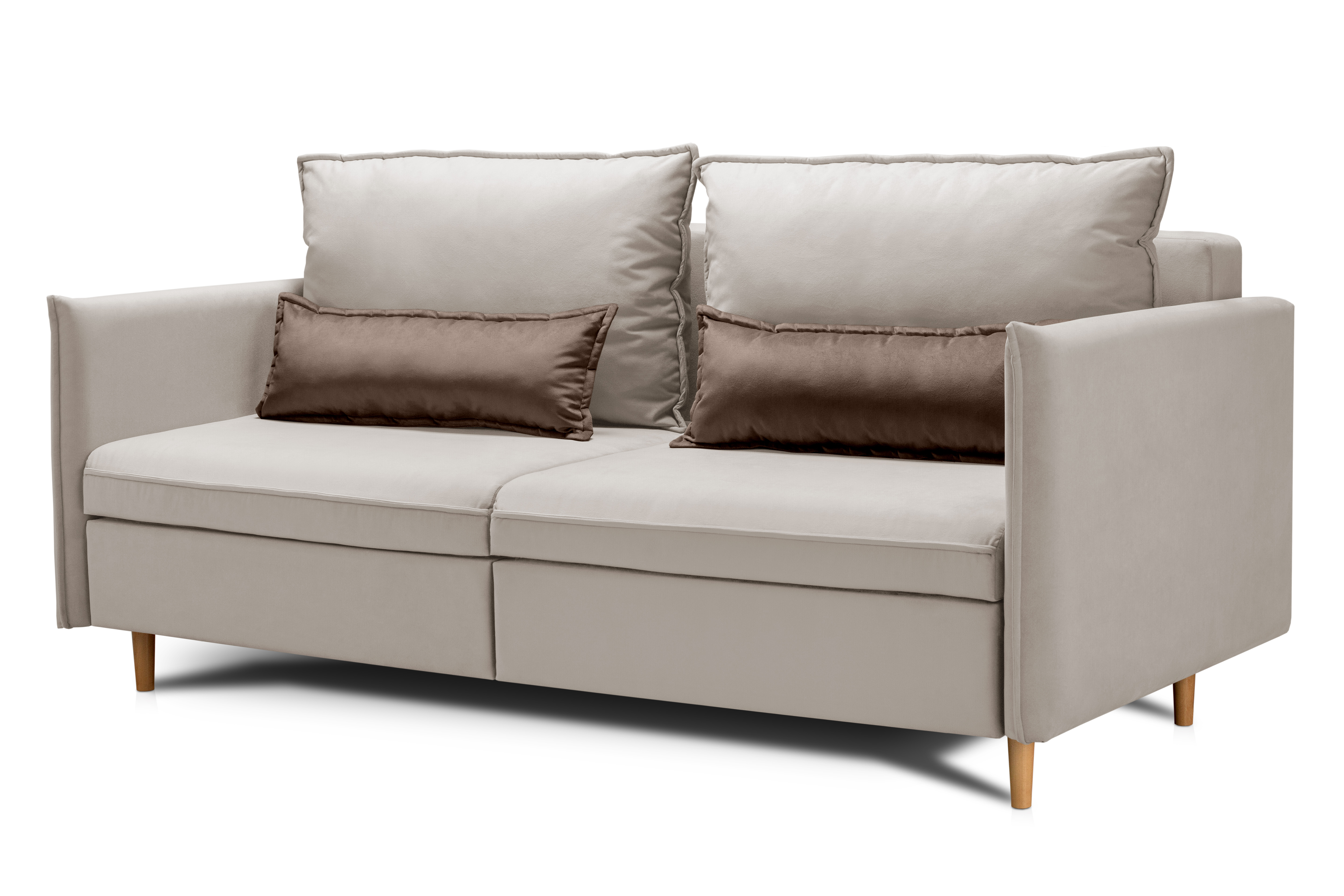Наполнение. В диване предусмотрены мягкие сиденья на независимом пружинном блоке со съемными чехлами, 4 подушки.