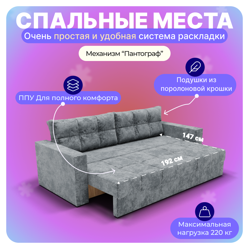Наполнение из ППУ обеспечит необходимую поддержку и комфорт для тела. Не откладывайте покупку этого замечательного дивана - он станет идеальным местом для релаксации после напряженного дня!