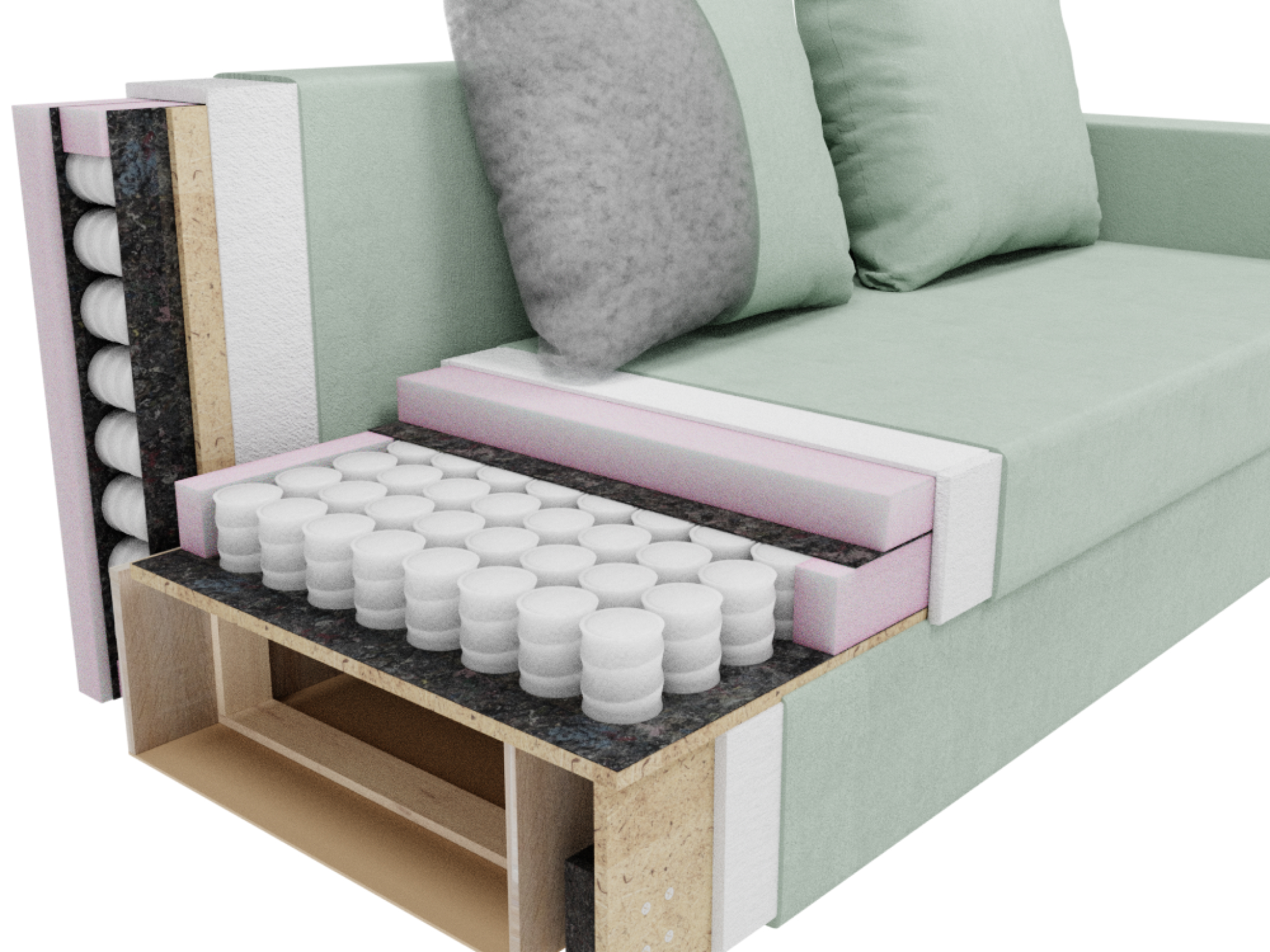 - Наполнитель из пенополиуретана, который обеспечивает мягкость и поддержку;