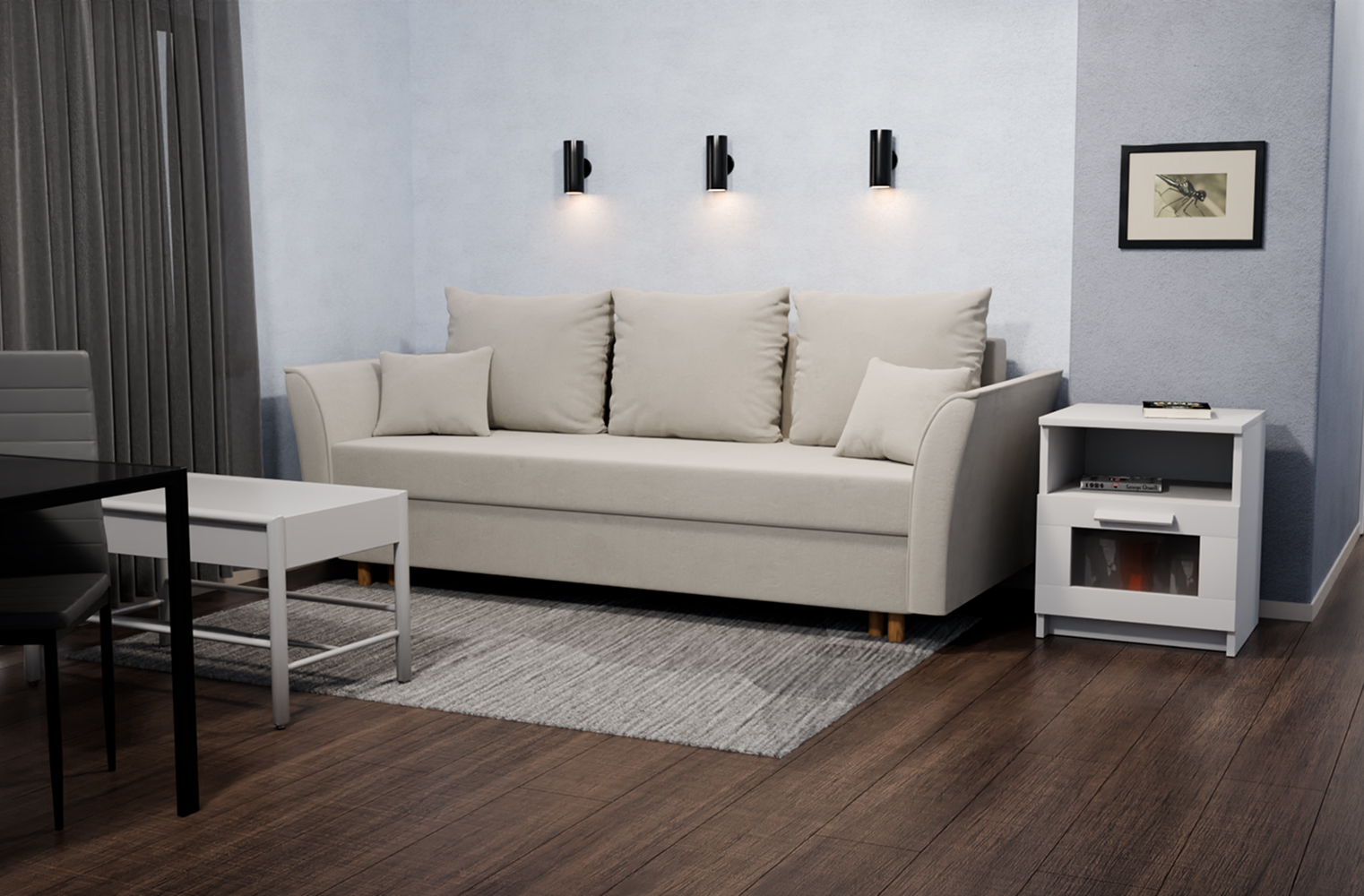 Особенности: с подлокотниками, раскладная конструкция, съемные подушки.