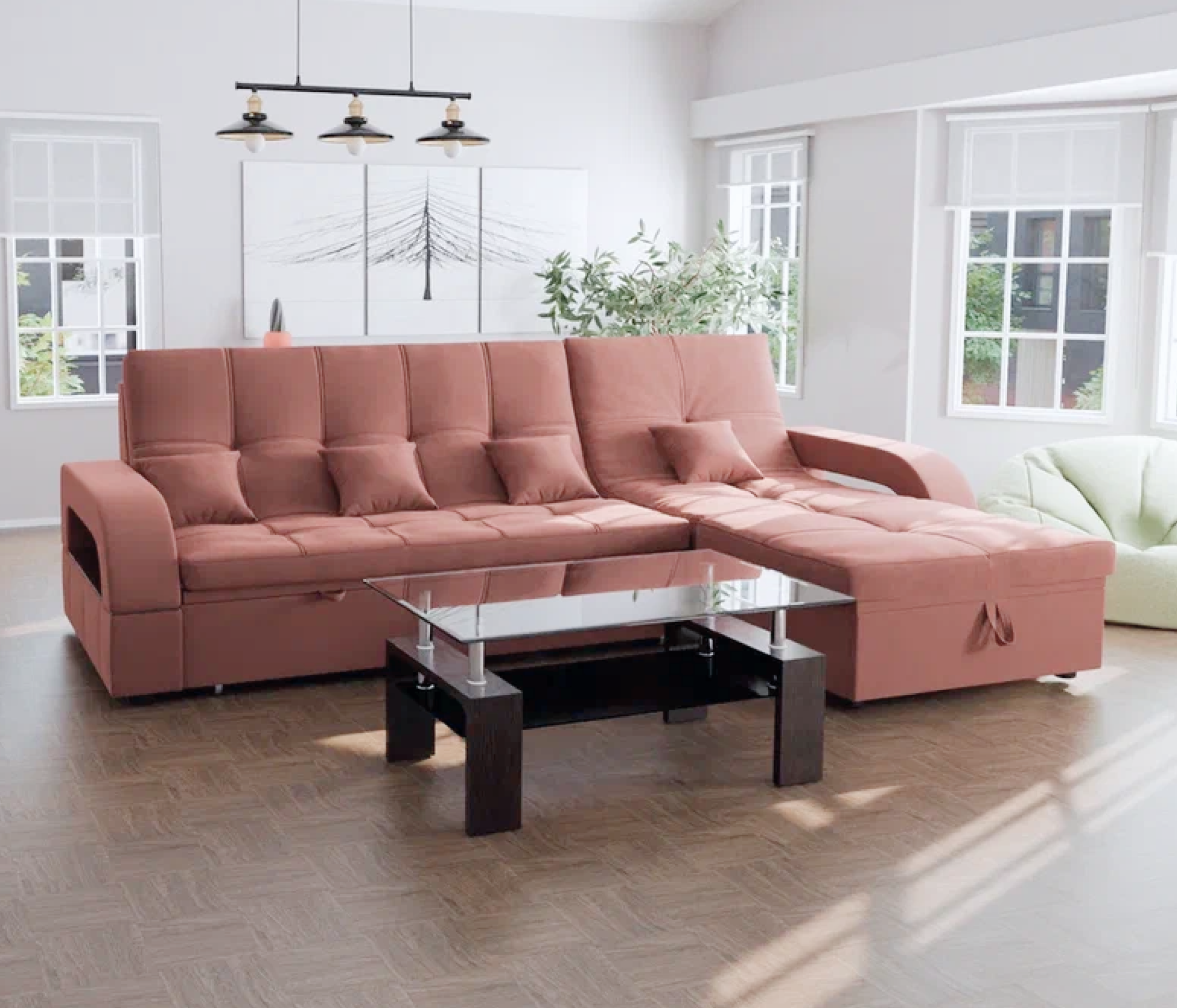 Спальное место имеет ширину 135 см и длину 228 см. Он предназначен для двух человек и имеет глубину сиденья 65 см. Максимальная нагрузка на диван составляет 280 кг.