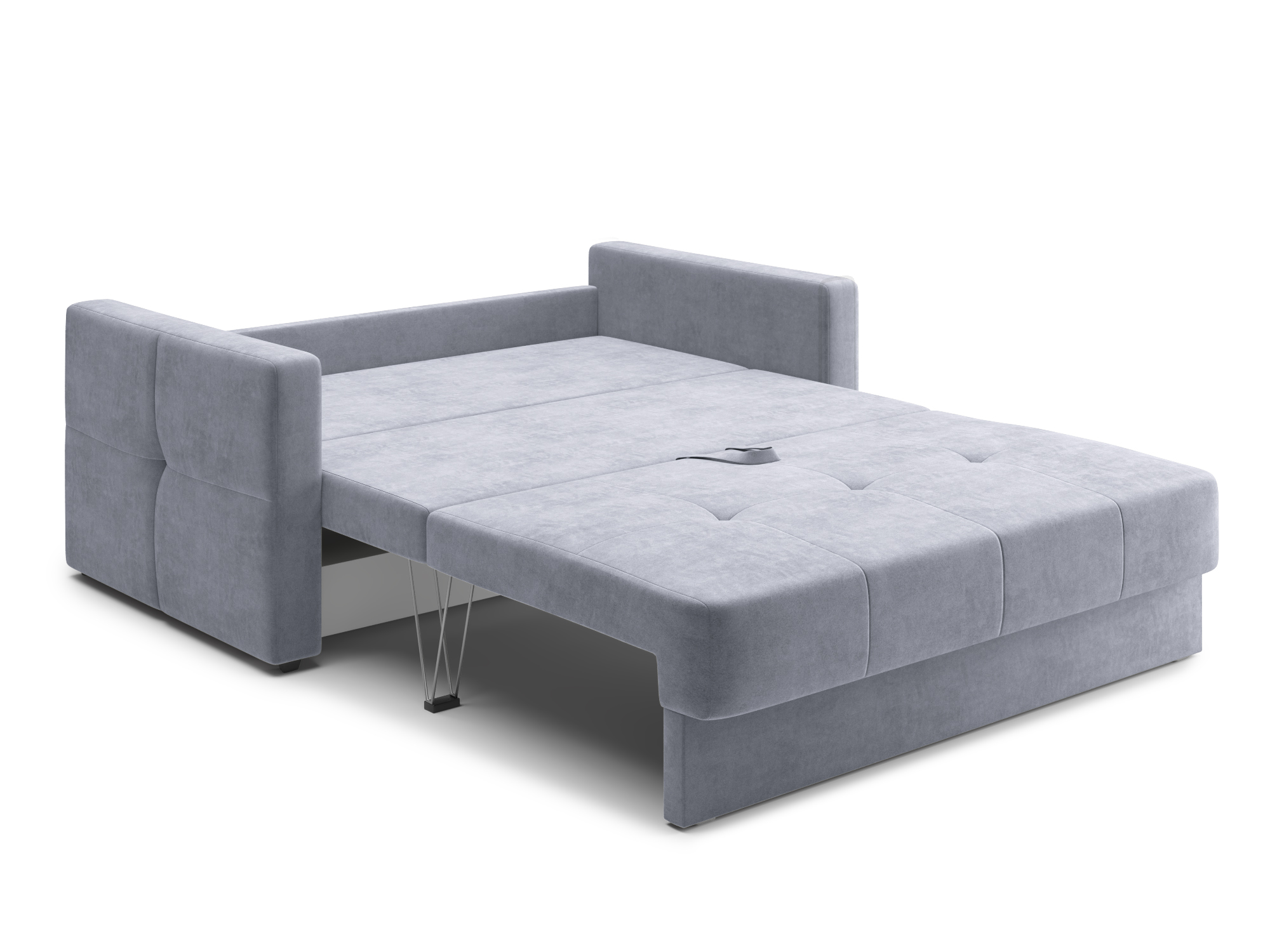 - Механизм раскладки трёхсекционная еврокнижка. В отличие от еврокнижки, спальное место у такого дивана образуется поперёк, а не вдоль сидячего места и состоит из трёх частей. Благодаря такой конструкции габариты дивана в ширину могут быть значительно меньше, чем у еврокнижки, что актуально при планировании расстановки мебели в зависимости от размеров помещения. Под сиденьем дивана находится короб для хранения вещей и постельных принадлежностей.