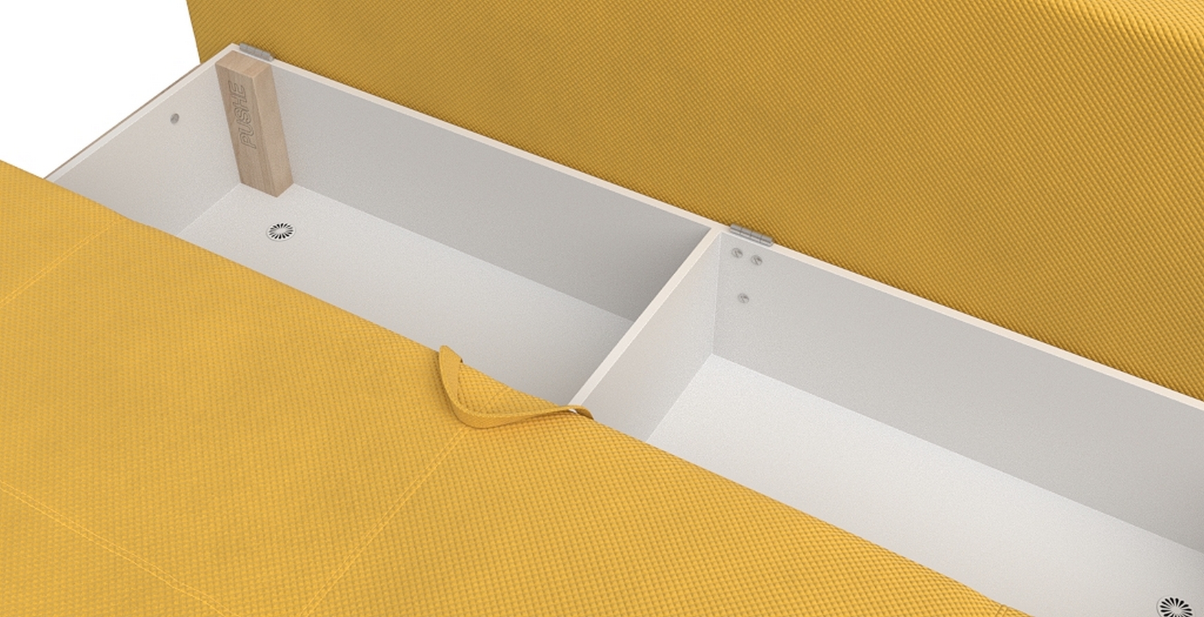 : диван с этим механизмом занимает не очень много пространства, может находиться как около стены, так и в центре помещения;
