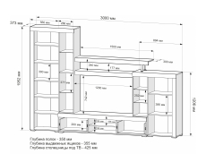 Габариты ниши под ТВ: 120 х 74,6 х 42,8 см