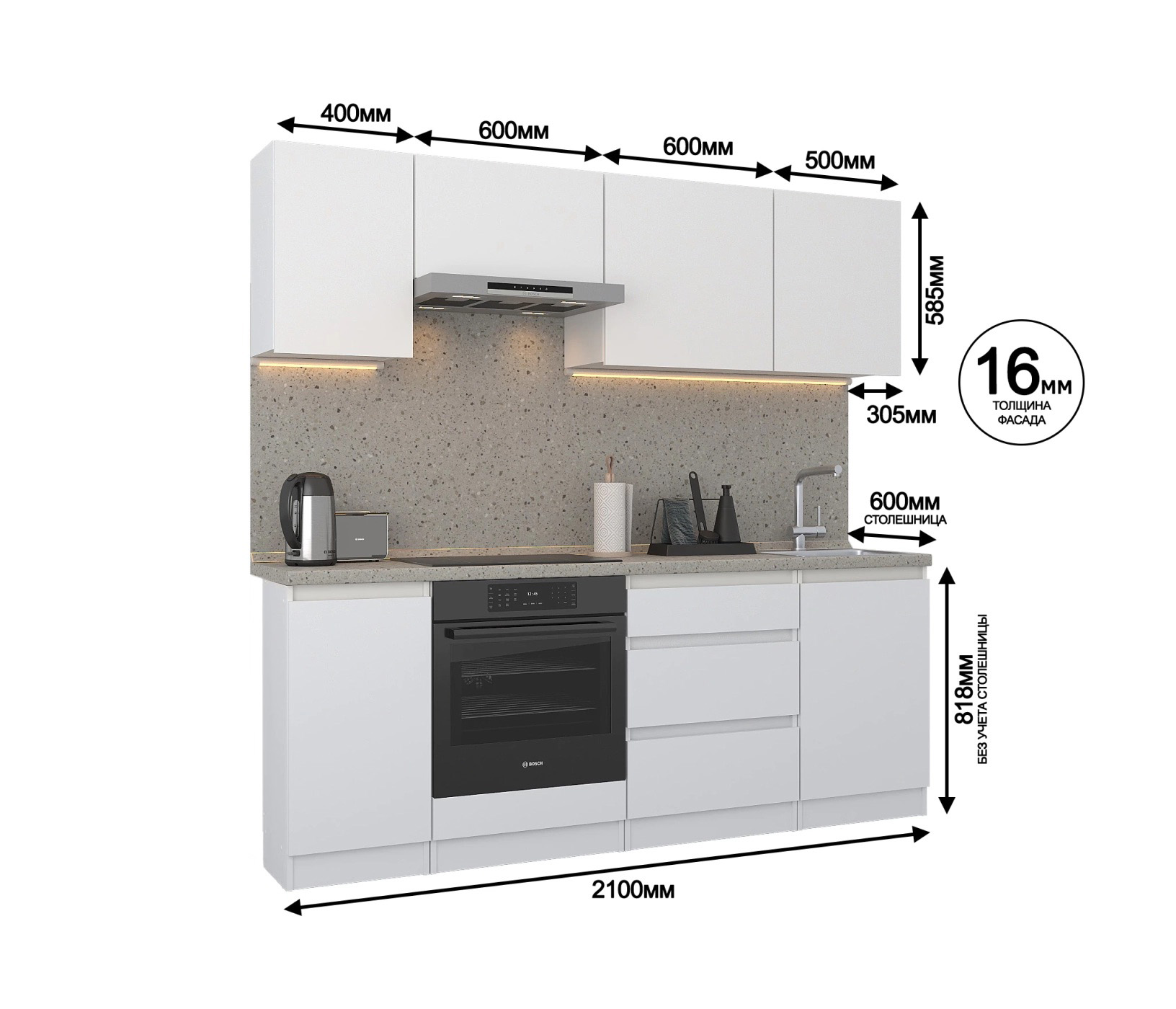 Отзывы о Столплит Кухонный гарнитур Леон прямой 210 см, белый