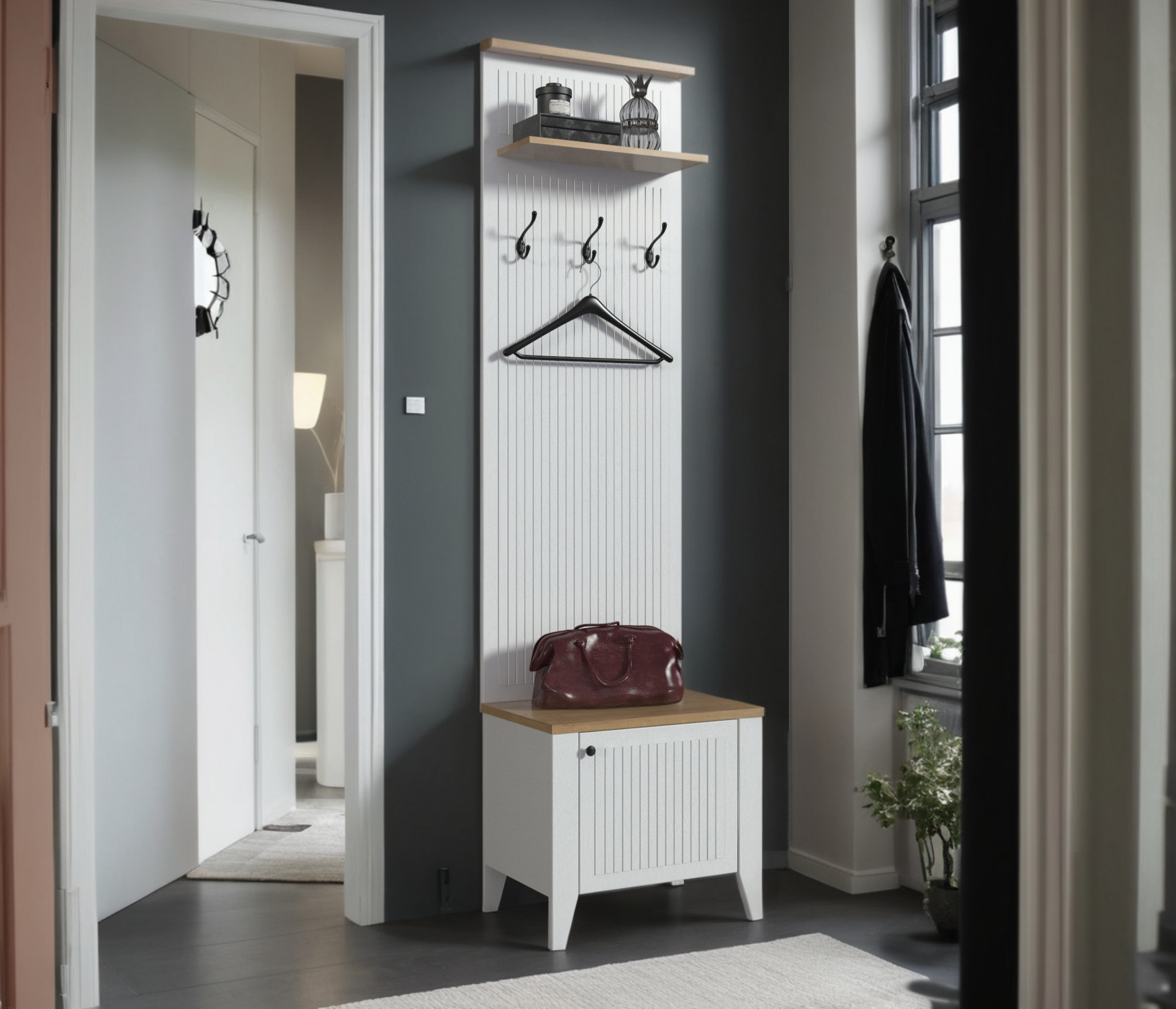 Материал корпуса: ЛДСП цвет Белый Альпийский, Дуб Гамильтон натуральный.