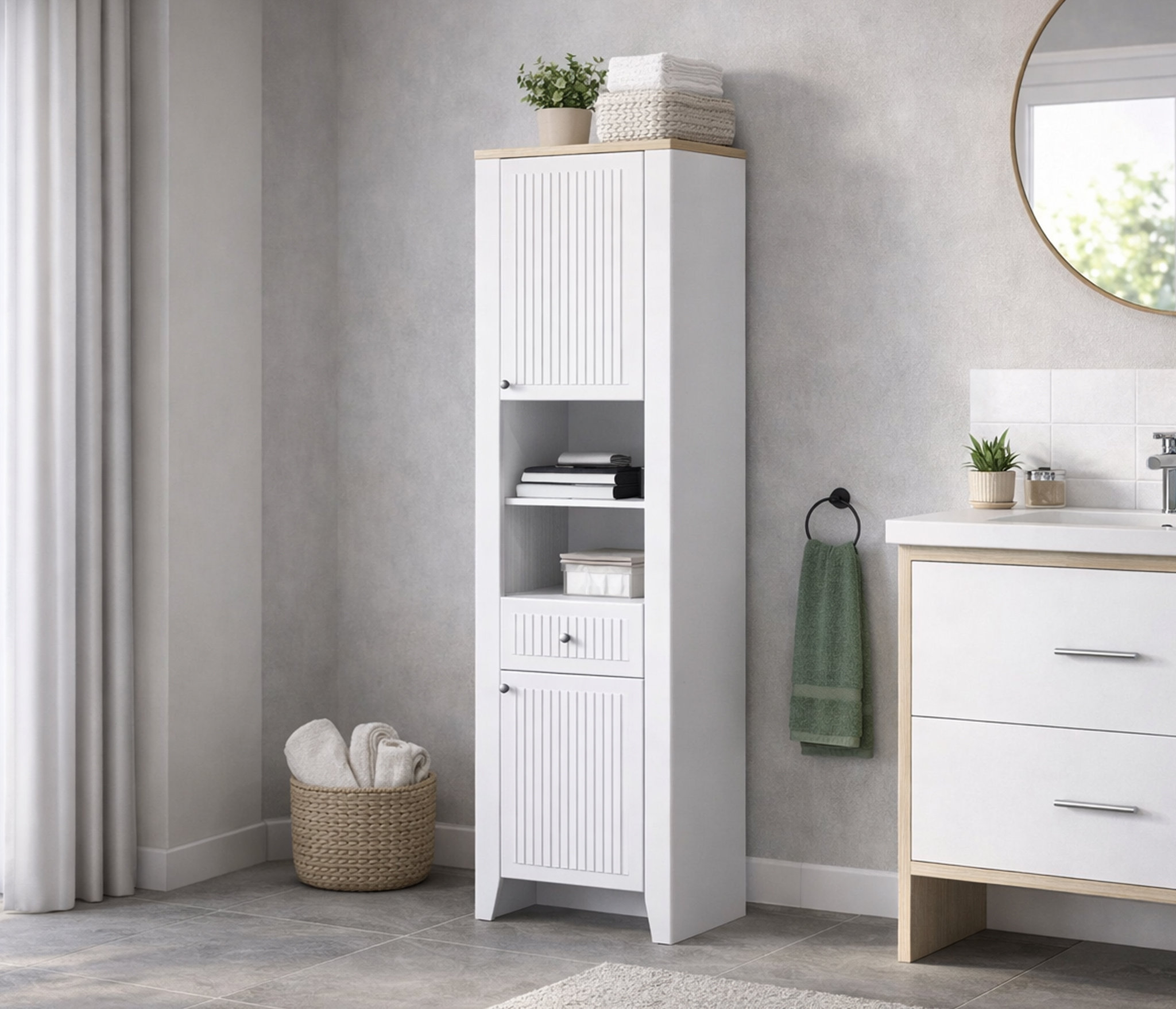 Материал корпуса: ЛДСП цвет Белый Альпийский, Дуб Гамильтон натуральный.