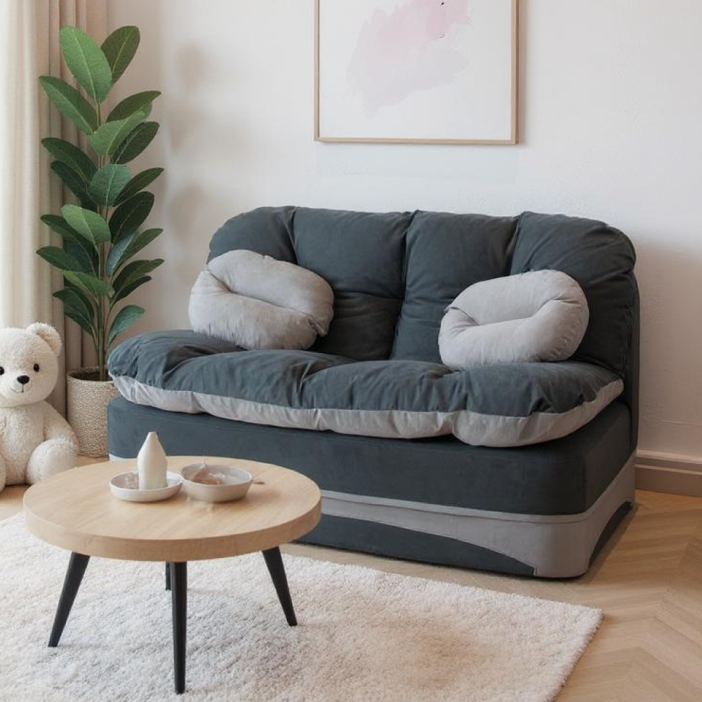 Мы не доставляем наш товар в вакуумной упаковке. Вес всего 30 кг. Это позволит Вам без усилий поднимать и передвигать маленький бескаркасный трансформер при уборке. Легкость даст возможность перемещать малогабаритный диван-кровать в разные помещения например спальню или на кухню. Благодаря отсутствию твердых элементов в конструкции софа безопасна для ребенка и идеально впишется в детскую комнату.