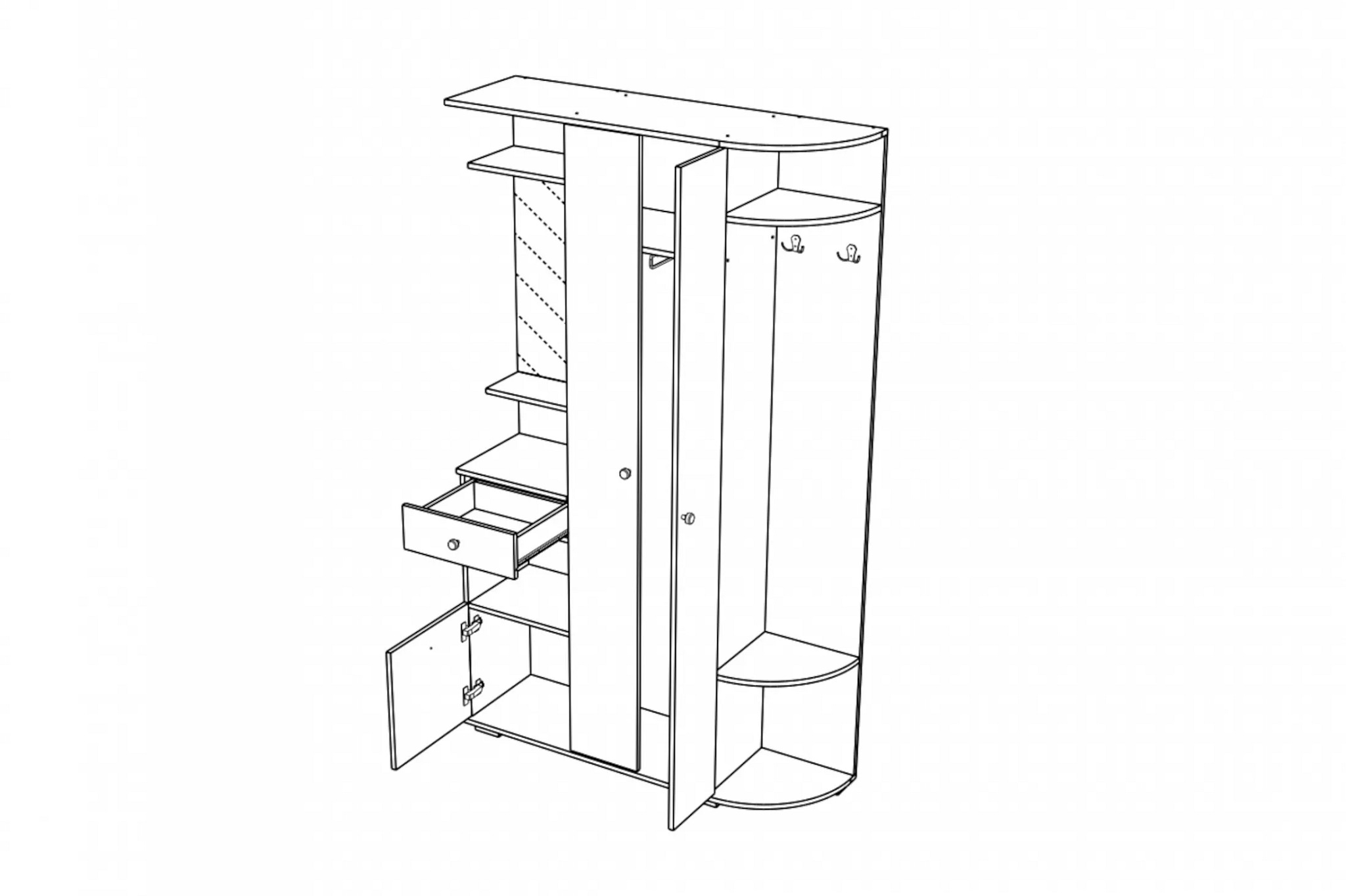 Прихожая Виза станет визитной карточкой вашего дома и поможет организовать место для аккуратного хранения одежды и обуви. Множество полочек и выдвижной ящик позволят с удобством разместить флаконы с духами, средства по уходу за обувью и множество других аксессуаров.