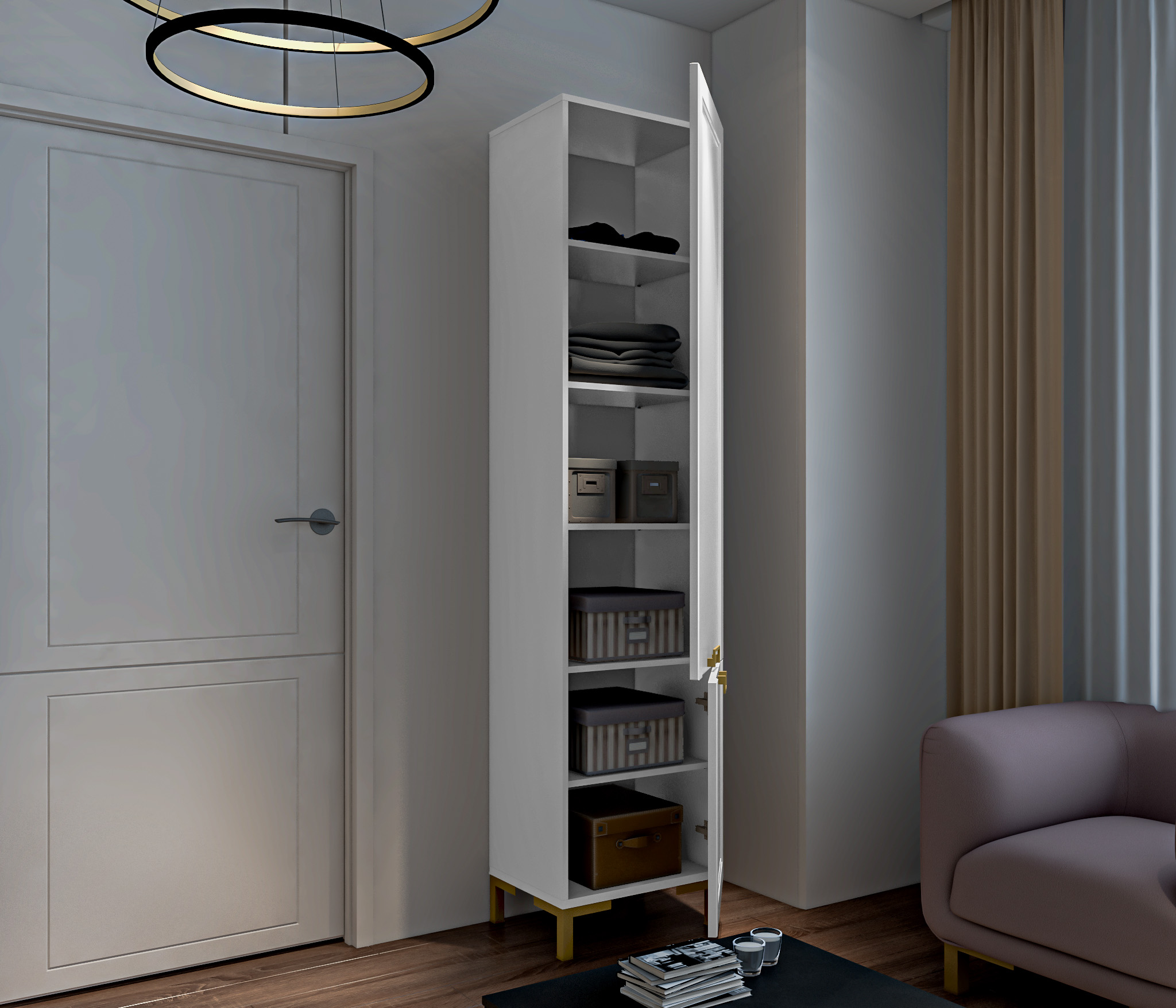 Ассоль СБ-3430 Шкаф-пенал Белый/МДФ БелыйАссоль СБ-3431 Полка Белый,МДФ Белый