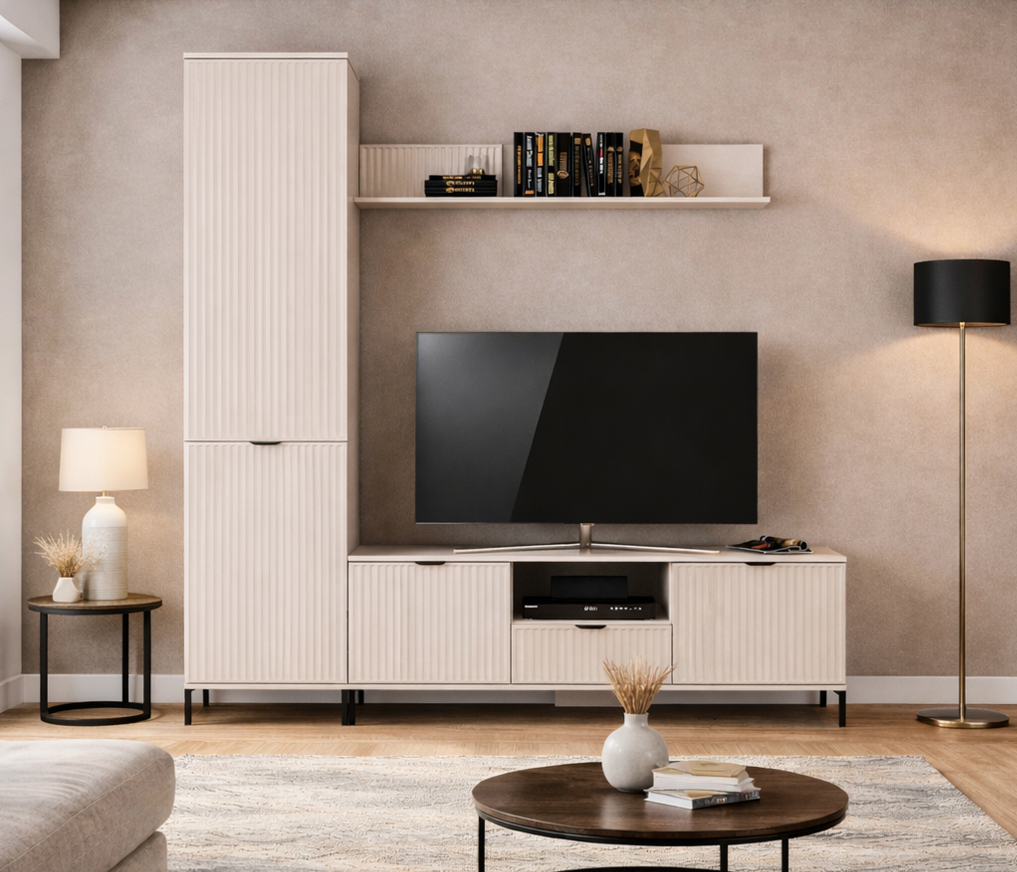 Отзывы о Столплит Комплект для гостиной, тумба ТВ и полка, Белый