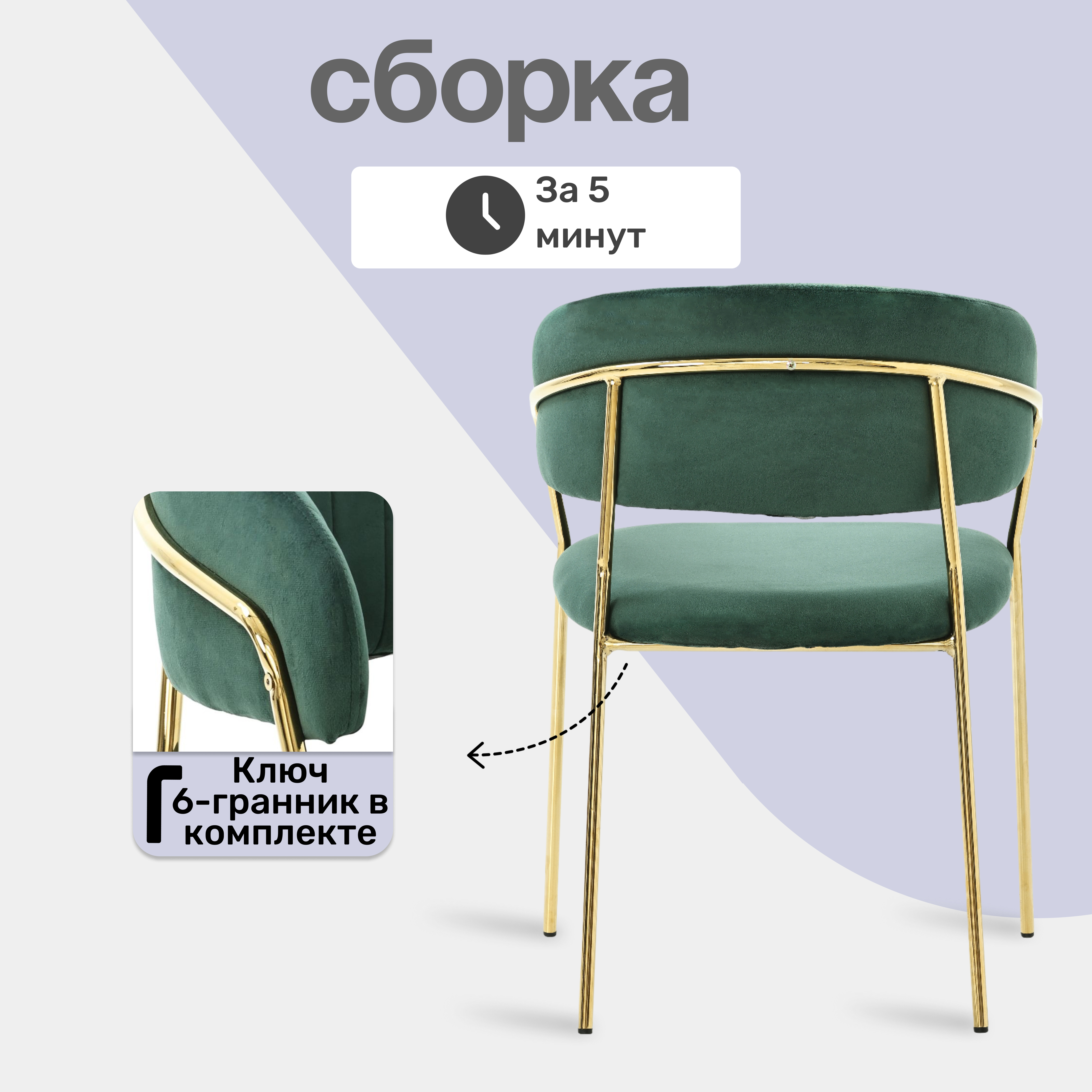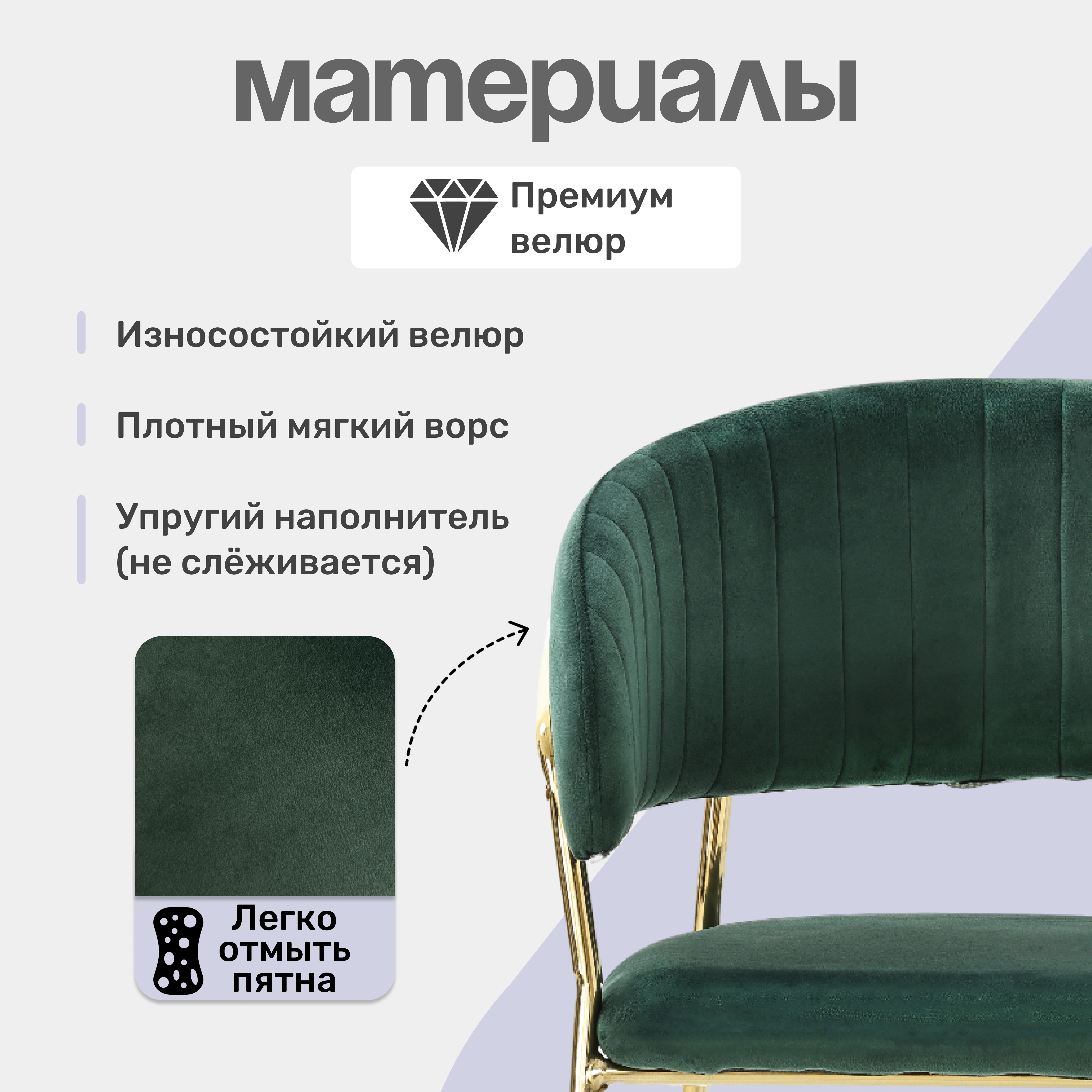 Кресло выполнено с золотистыми акцентами, что придает ему изысканный и современный вид. Обивка из велюра, обеспечивает мягкость и комфорт при использовании.