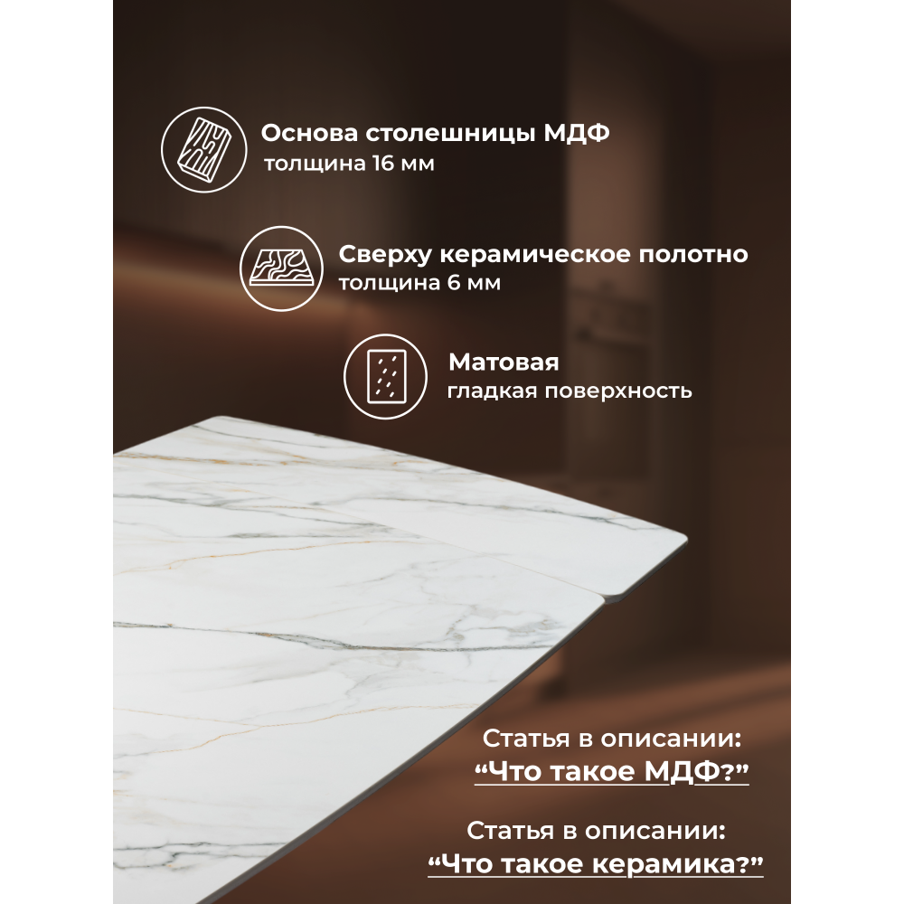 Керамический стол Готланд с расстоянием между ножками 80 см и толщиной столешницы 2 см звучит как стильный и функциональный предмет мебели. Ноги необычной формы могут добавить оригинальности и эстетической привлекательности.