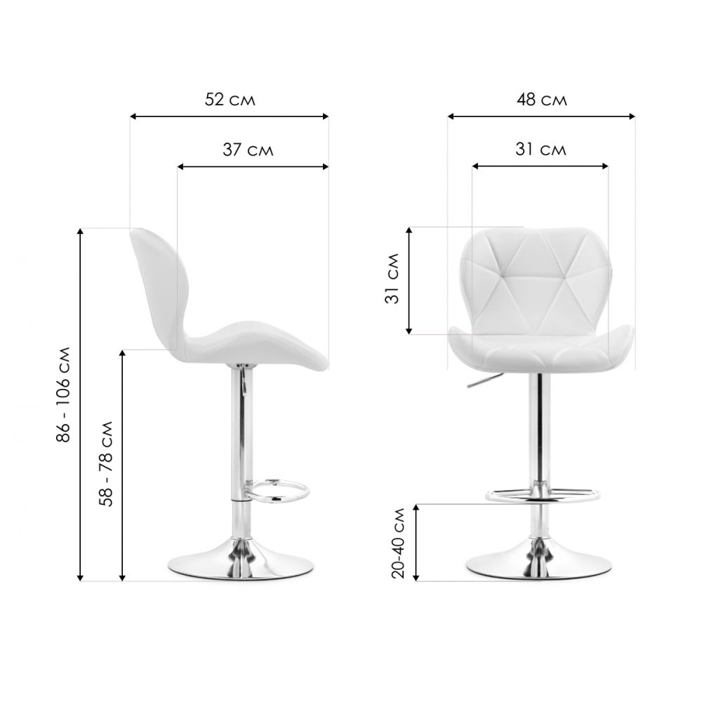 Регулируемый по высоте вращающийся барный стул Trio. Сиденье и спинка выполнены из экокожи, каркас из металла. Сидушка регулируется от 58 до 78см по высоте, подножка от 20 до 40см от пола