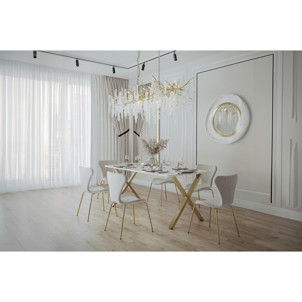 ● обивка букле напоминает овечью шерсть, не мнется, не деформируется и не растягивается● каркас изготовлен их прочного металла, окрашенного в золотистый глянец.