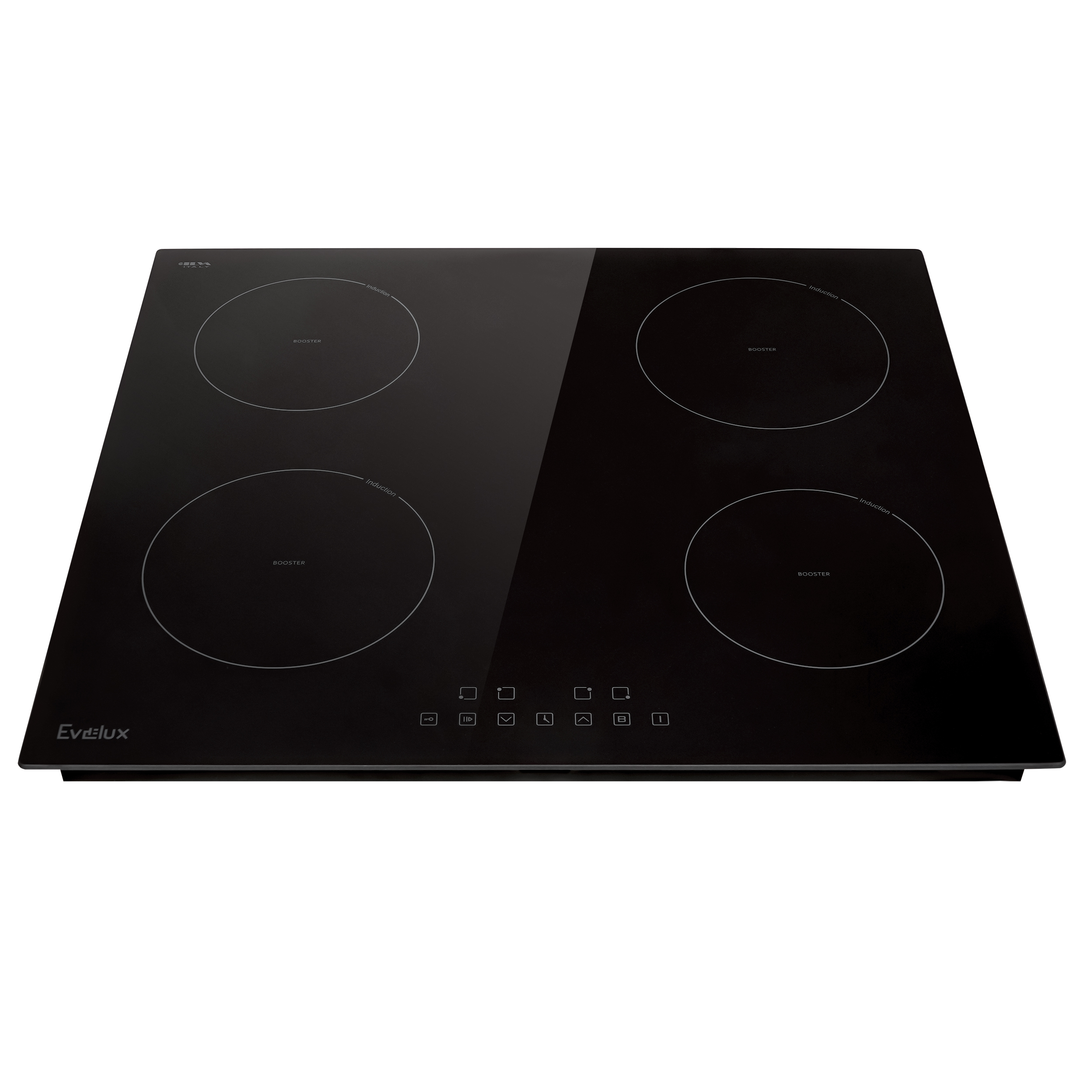 Варочная панель электрическая, индукция, 60 см, 4 конфорки с функцией Booster, сенсорное управление, 9 уровней мощности, таймер 1-99 мин, блокировка управления,защита детей, защитное отключение, функция "пауза", 7200 Вт, черное стекло, ILVA (Италия),590 x 520 x 62 мм.