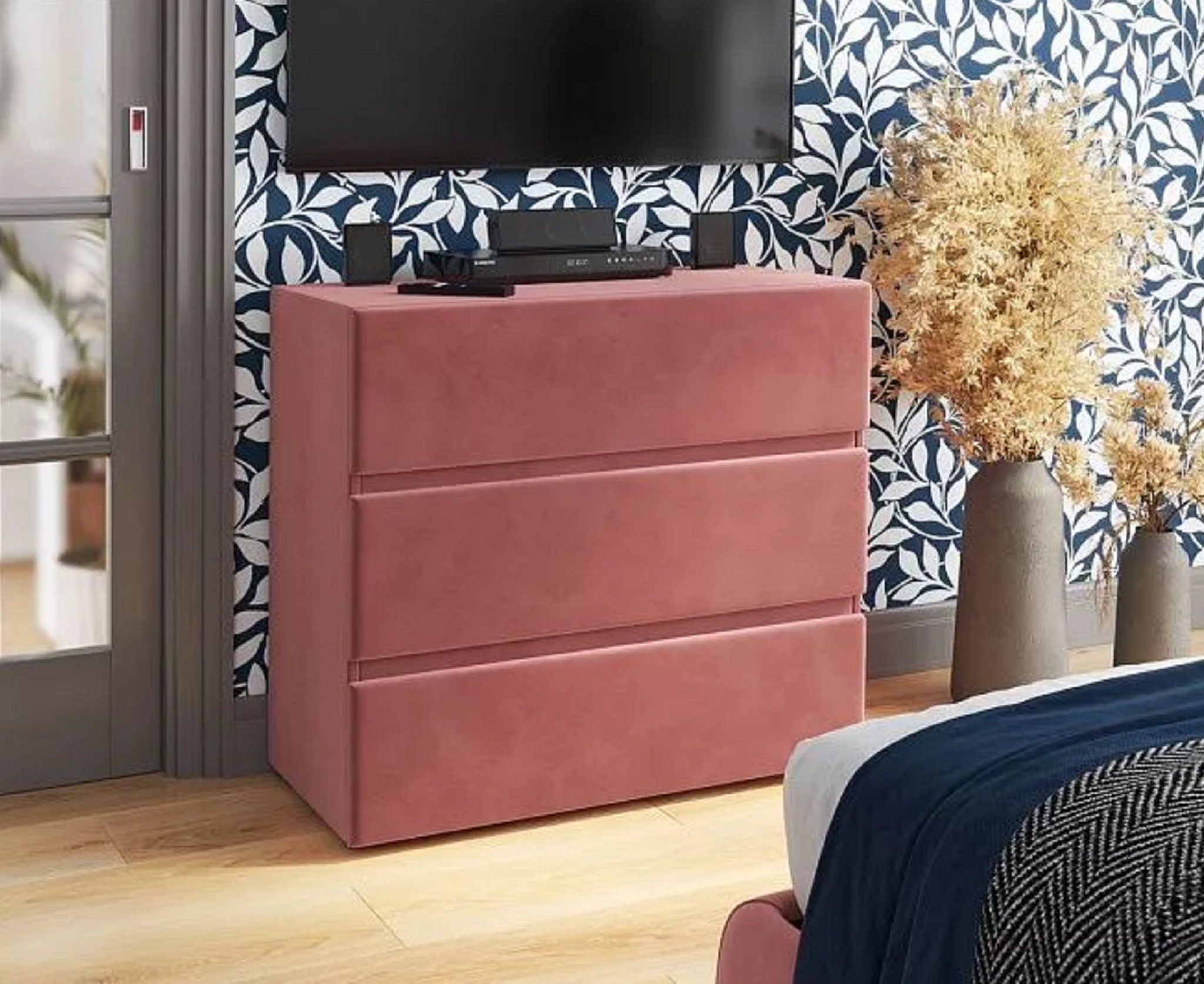 Современный комод с тремя глубокими ящиками для спальни или детской комнаты. Комод идеально сочетается с кроватью из одноименной серии.