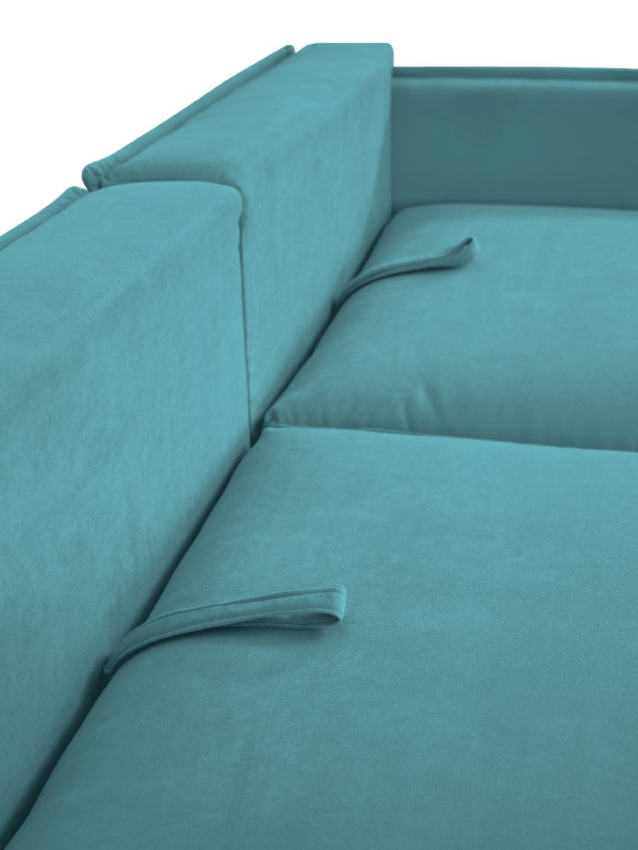 Угловой модульный диван-кровать -- образец стиля минимализм. Каркас дивана состоит из массива сосны и березовой фанеры. Обивка износостойкая с влагоотталкивающей пропиткой и защитой от когтей мелких животных. Механизм «Еврокнижка» трансформирует модель в двуспальную кровать и подходит для ежедневного сна. Основой матраса является блок независимых пружин, расположенный по всей поверхности спального места. Он поможет правильно поддерживать ваше тело во время сна. Преимуществом модели служит наличие двух вместительных ящиков для хранения, один у основного модуля и один у оттоманки. В ящиках установлена светодиодная подсветка.