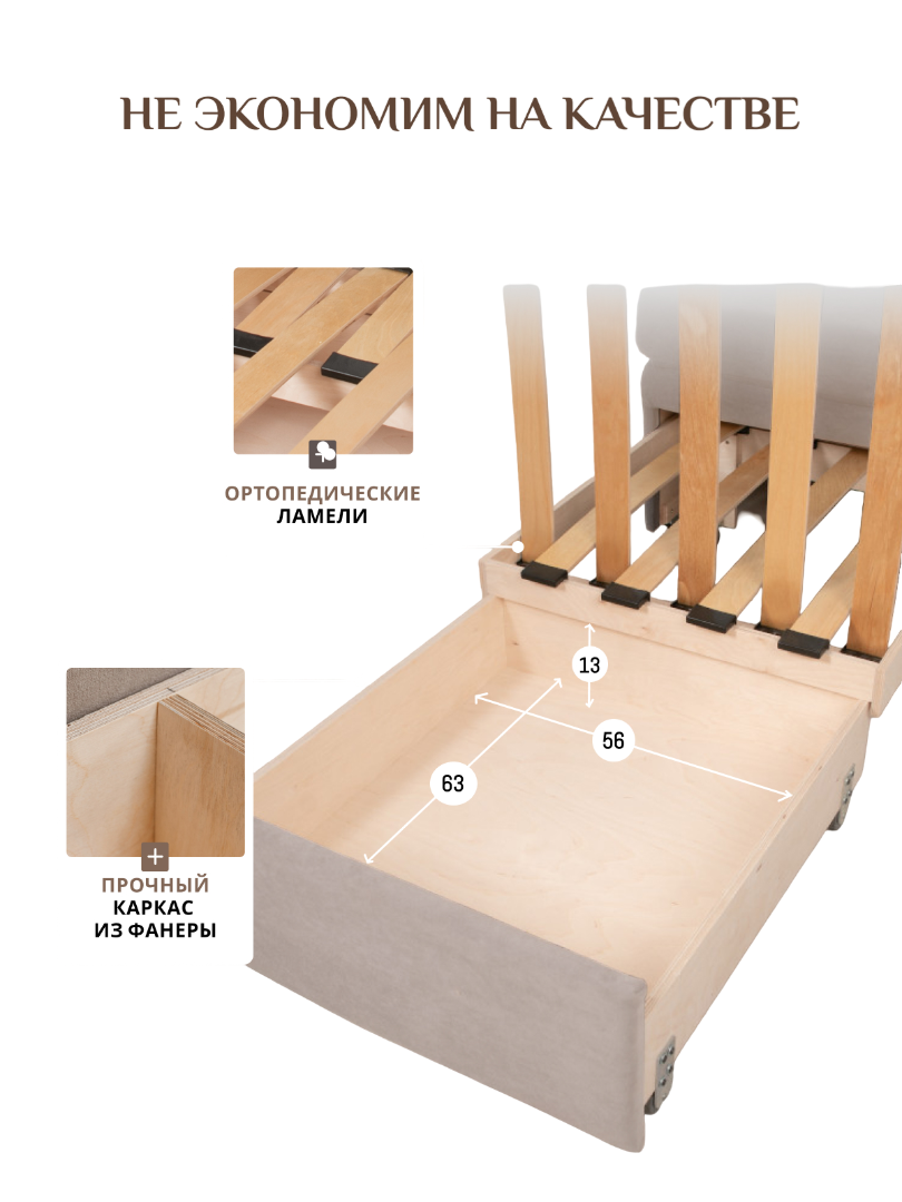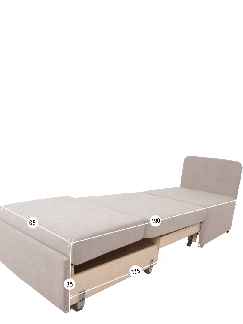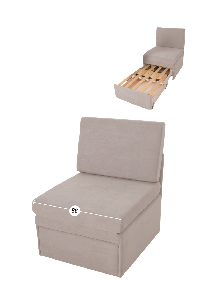 Кресло обладает габаритами: ширина 77 см, глубина 66 см, высота 89 см, что позволяет разместить его в любой комнате, включая гостиную, спальню или детскую. Преимущества и особенности выдвижного механизма трансформации в том, что он позволяет легко и быстро превратить кресло в удобную кровать.