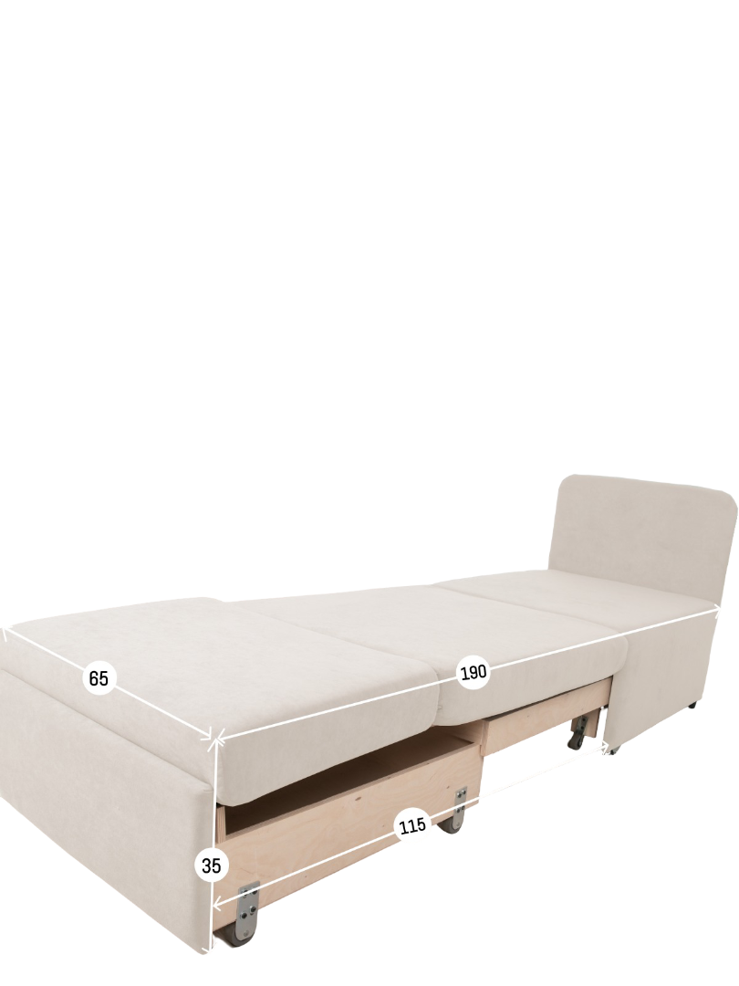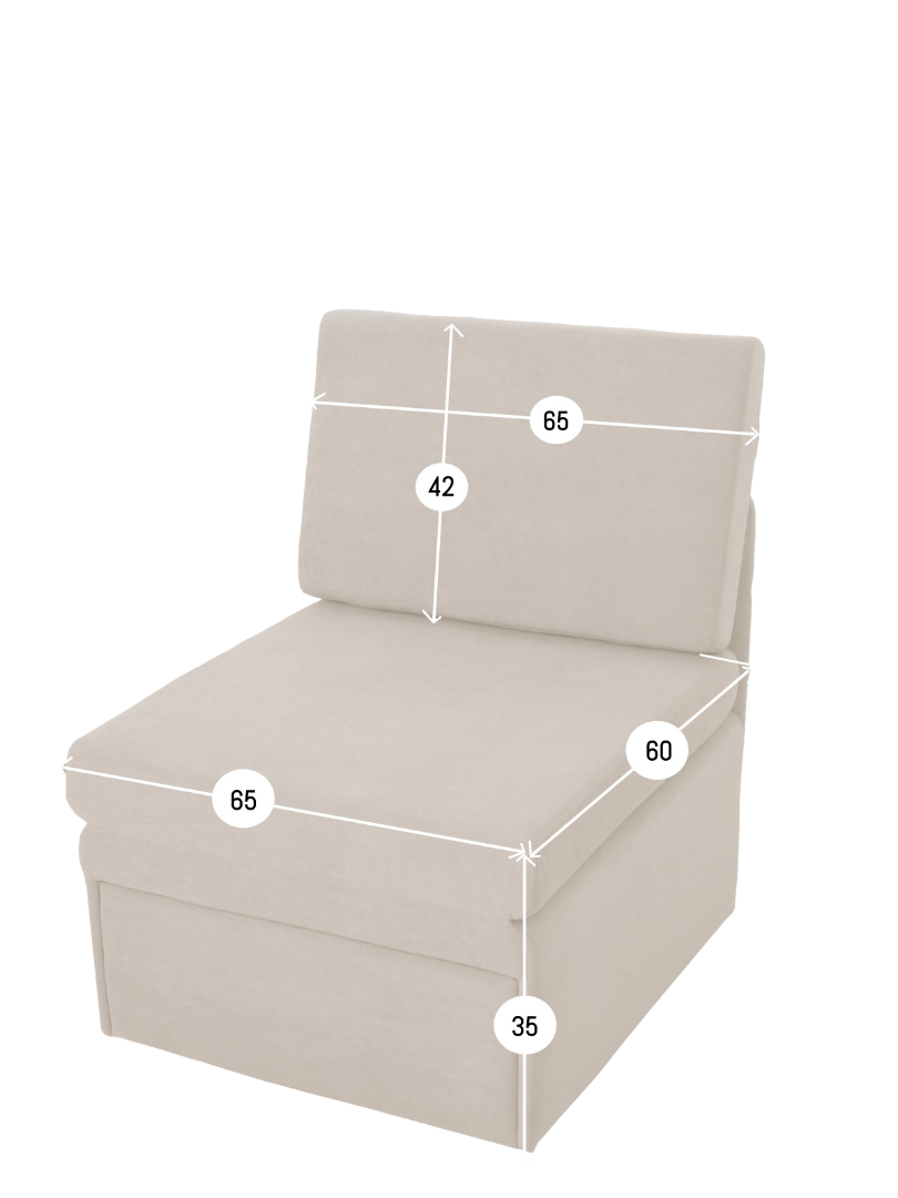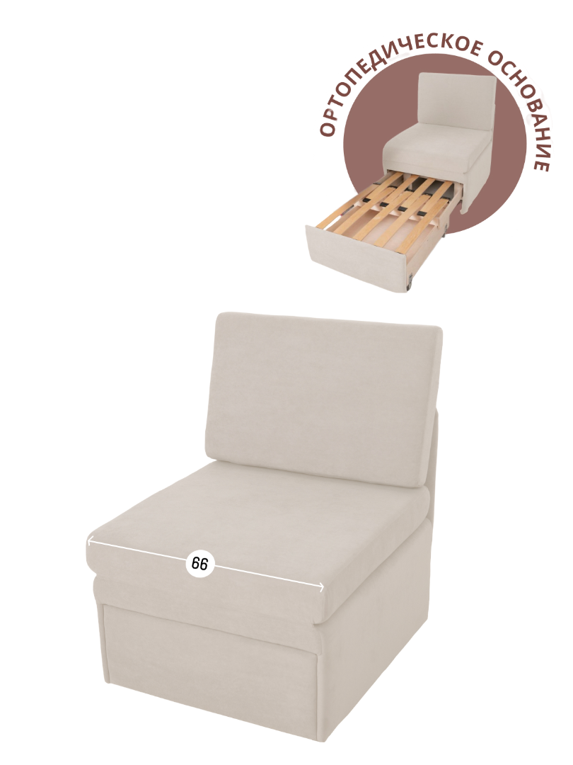 Кресло обладает габаритами: ширина 77 см, глубина 66 см, высота 89 см, что позволяет разместить его в любой комнате, включая гостиную, спальню или детскую. Преимущества и особенности выдвижного механизма трансформации в том, что он позволяет легко и быстро превратить кресло в удобную кровать.