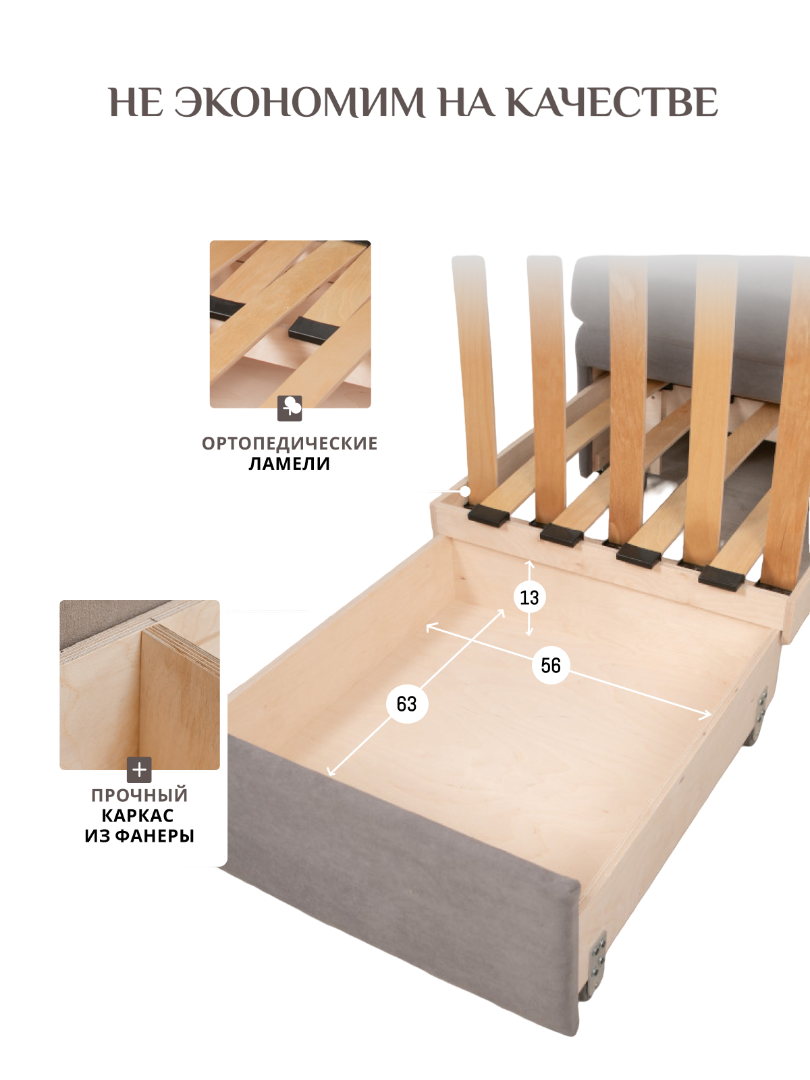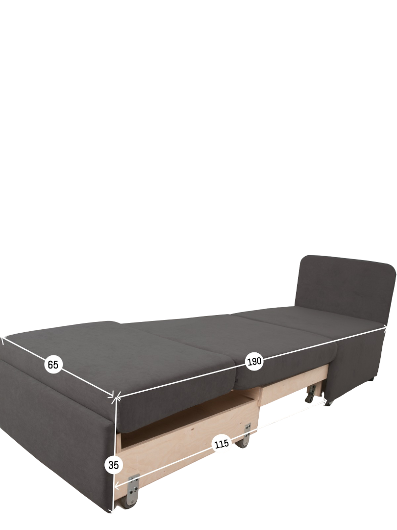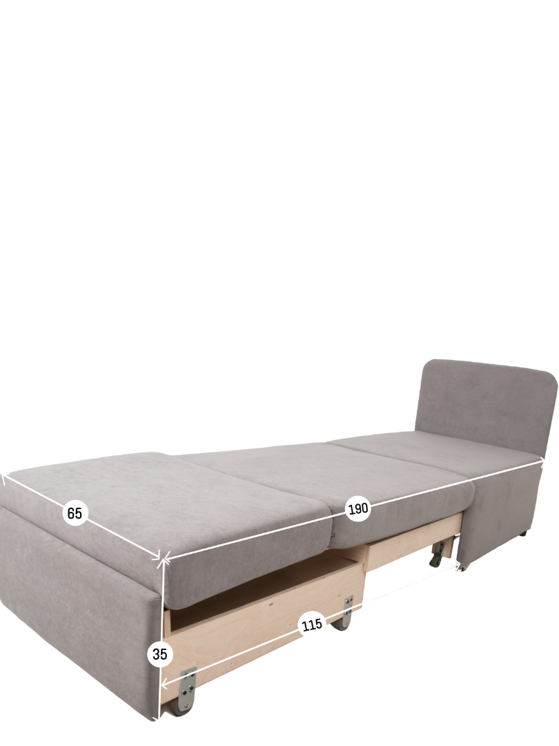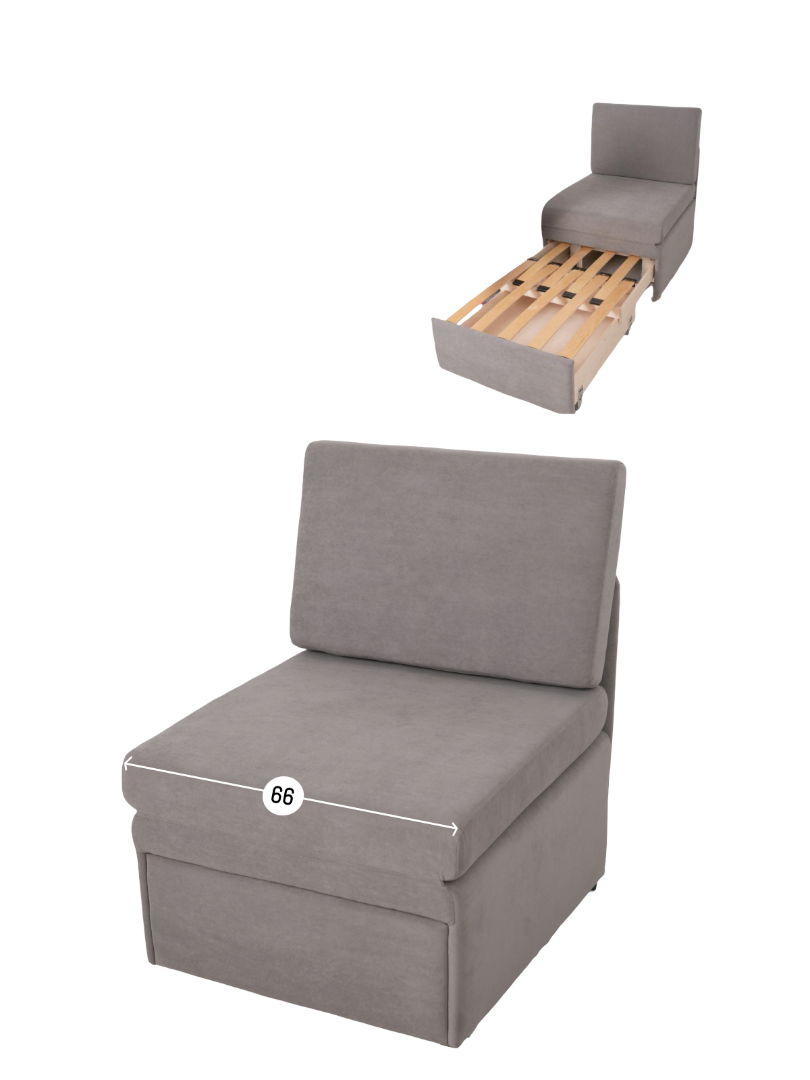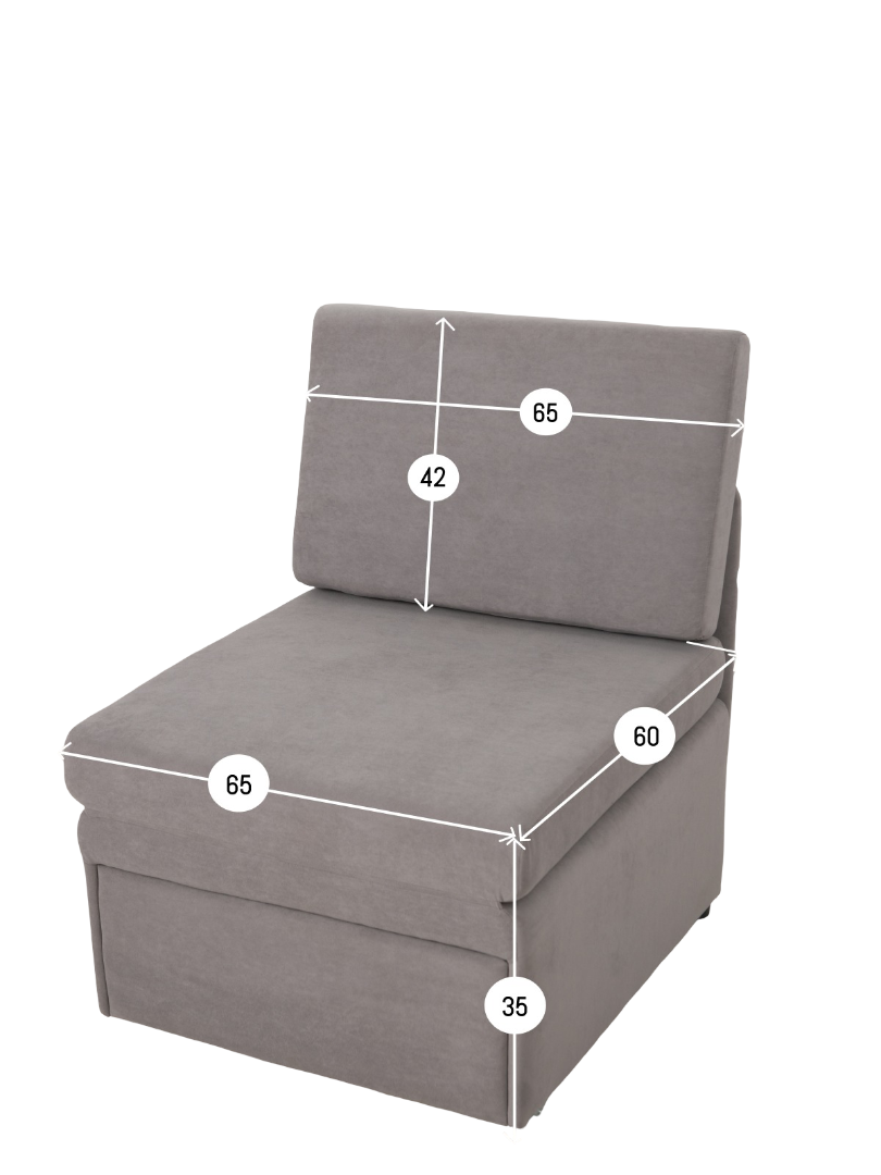Кресло обладает габаритами: ширина 77 см, глубина 66 см, высота 89 см, что позволяет разместить его в любой комнате, включая гостиную, спальню или детскую. Преимущества и особенности выдвижного механизма трансформации в том, что он позволяет легко и быстро превратить кресло в удобную кровать.