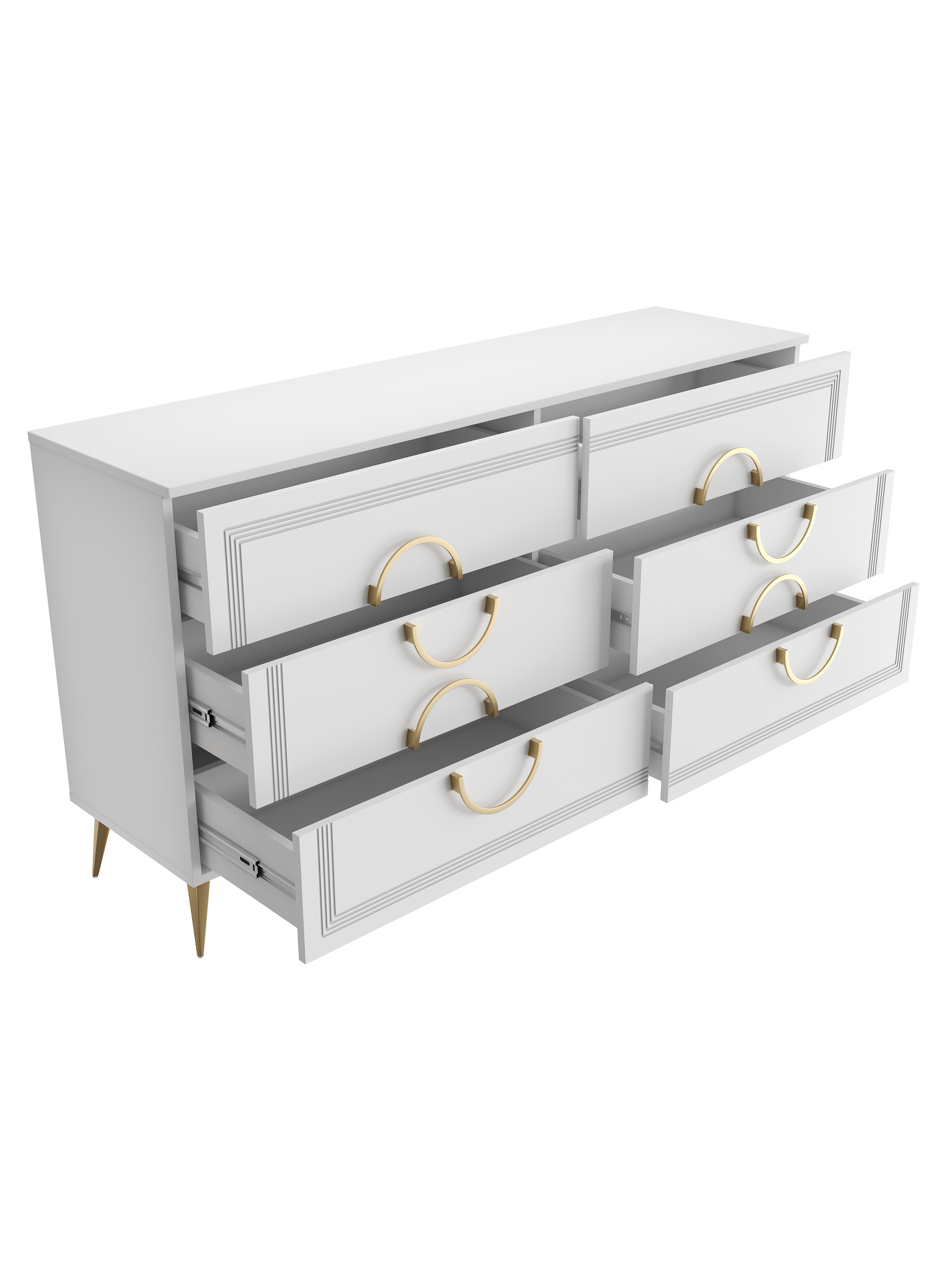 Шесть выдвижных ящиков на телескопических направляющих