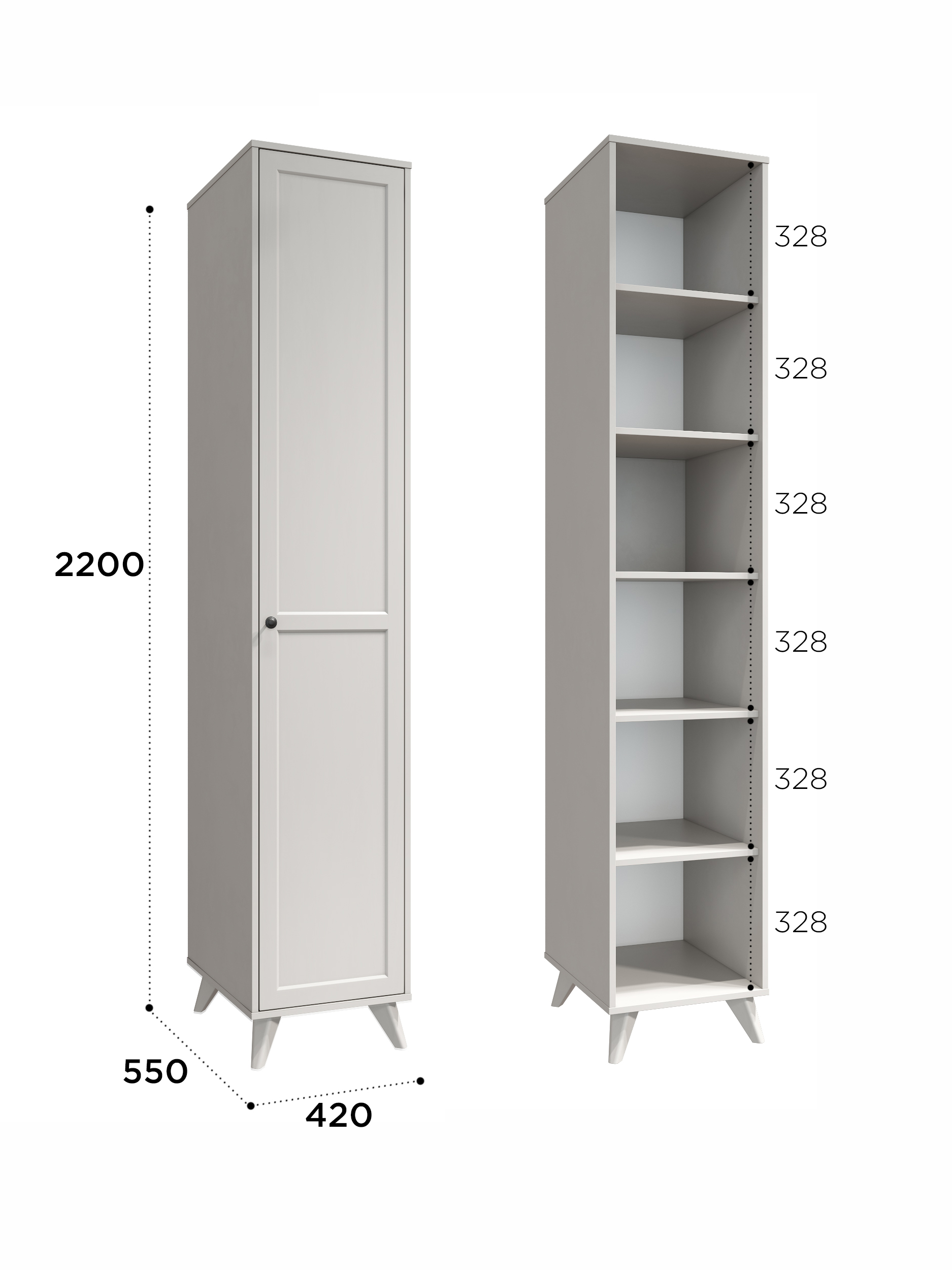 Размеры модуля (ш/в/г) в мм: 420х2200х55