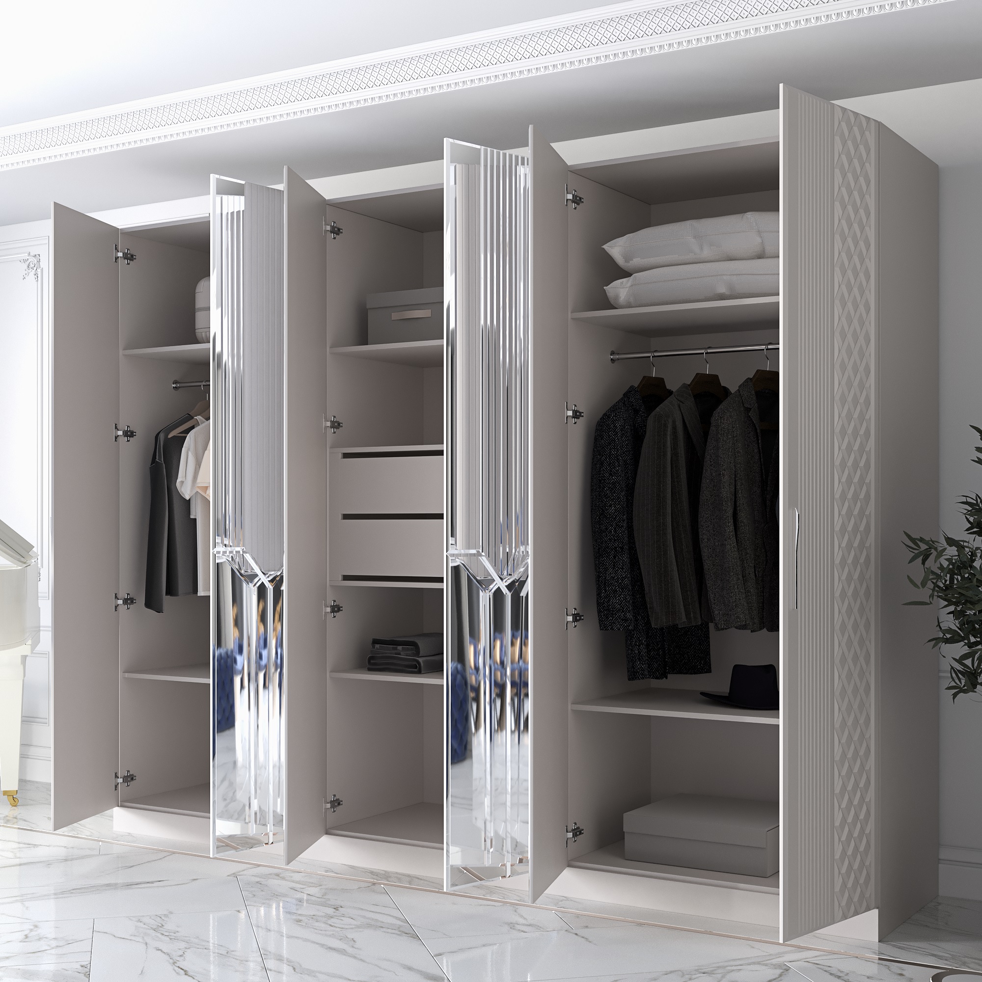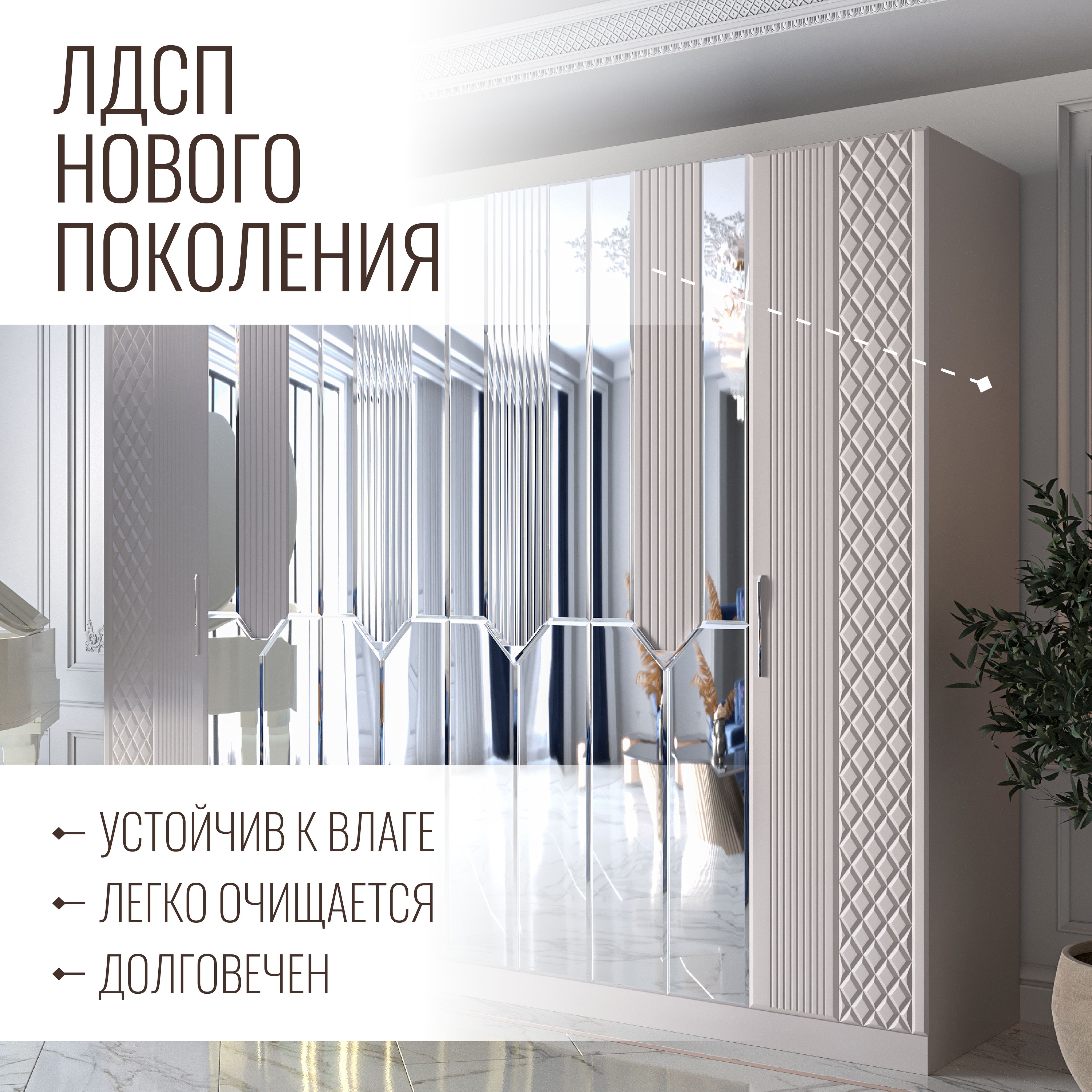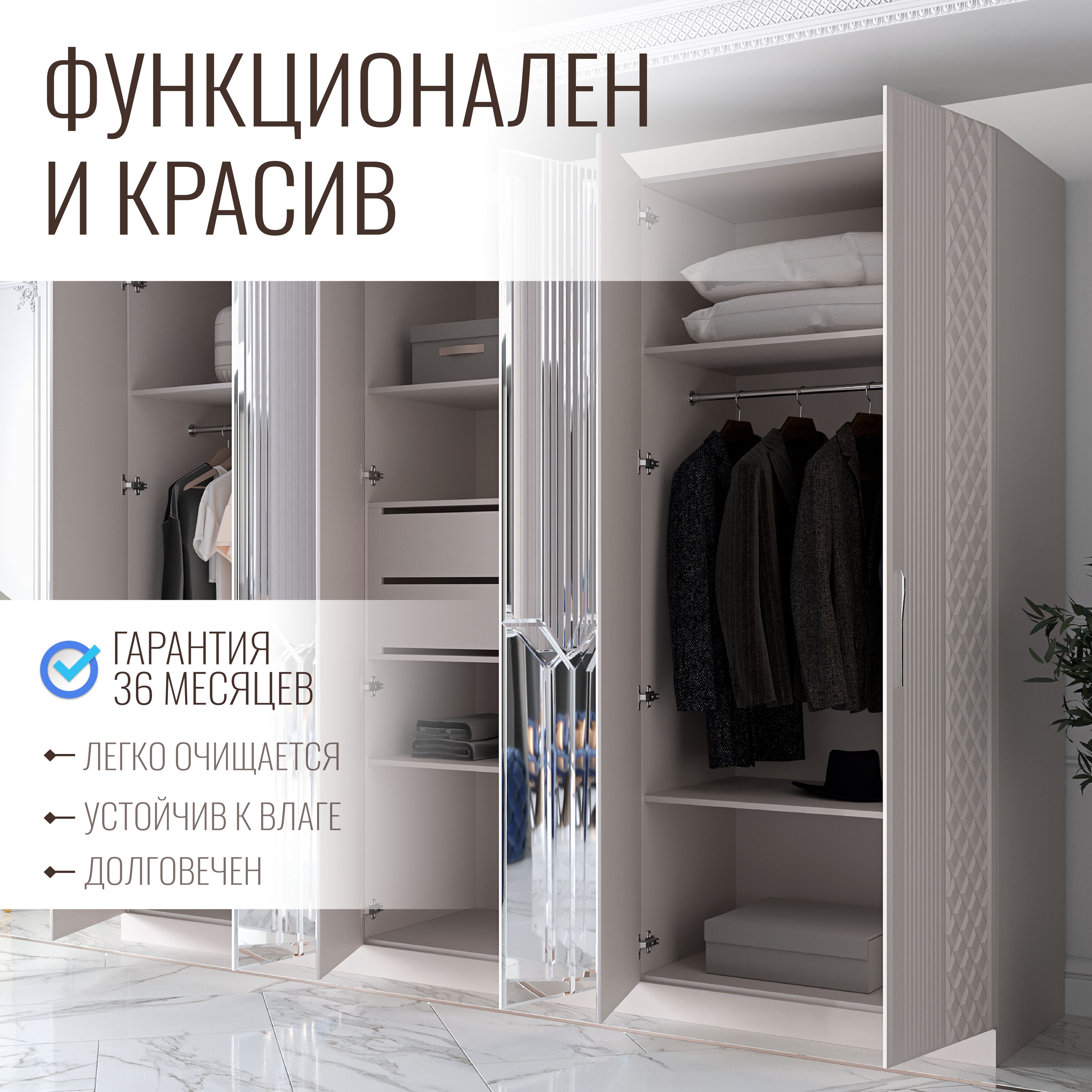 Отзывы о Столплит Шкаф распашной 6-ти дверный Савелья кашемир Серебро