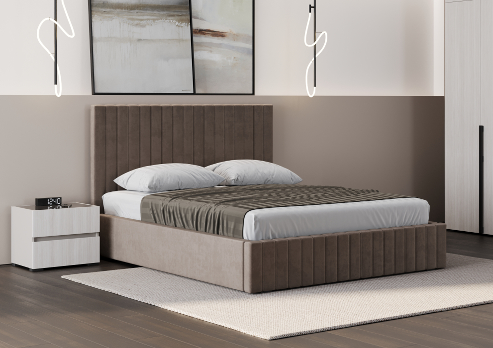 Кроме того, благодаря своей конструкции кровать не собирает пыль под собой, что облегчает уборку и поддержание чистоты. Кровать оснащена усиленным основанием, что гарантирует надёжность и долговечность. Доступна в трёх элегантных цветах: бежевый, серый и коричневый, чтобы удовлетворить любые предпочтения и требования вашего интерьера.