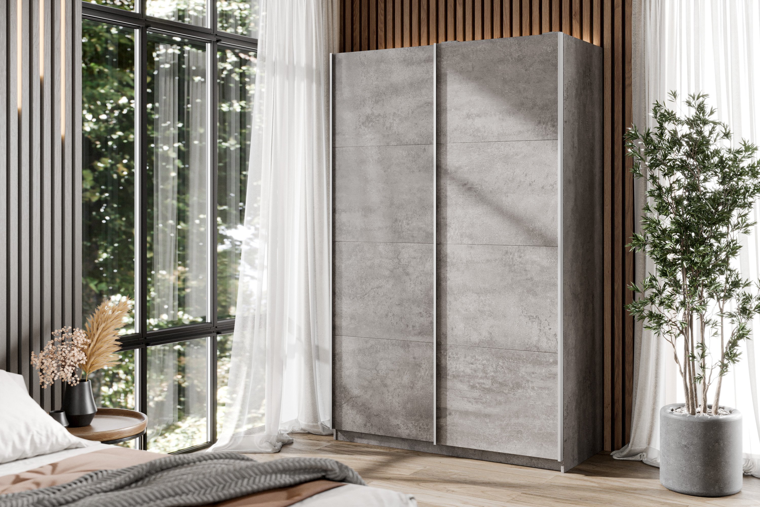 Шкаф-купе Smart 1624 2х дверный (фасады ЛДСП) профиль серебро (Бетон) Код I0000411316
