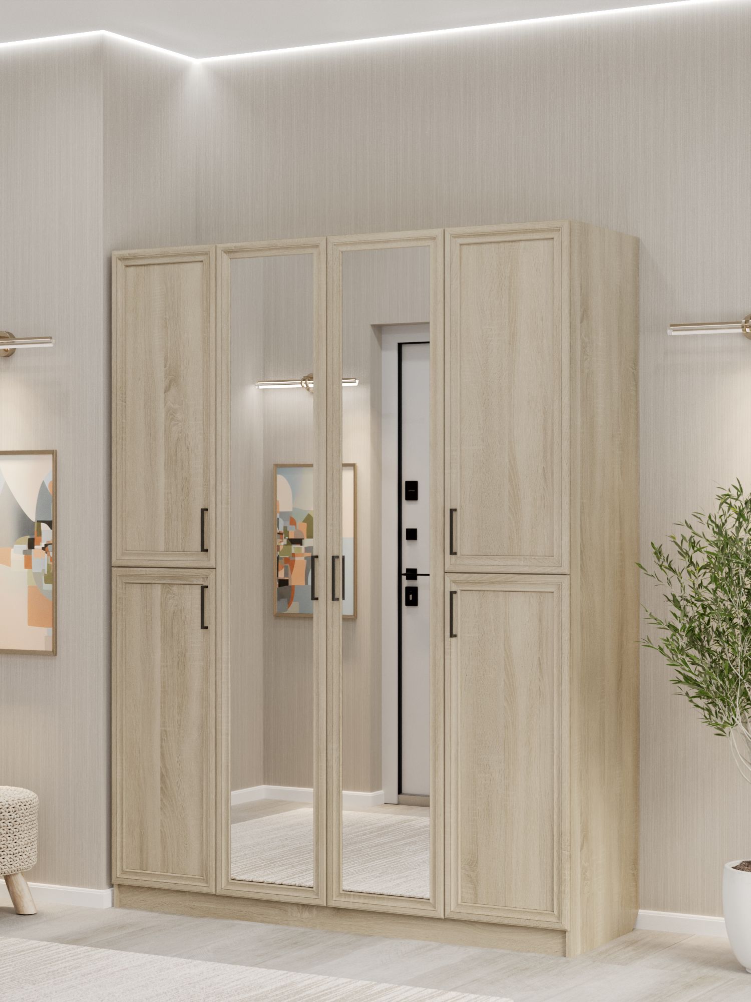 - Удобное зонирование. Четыре двери позволяют организовать доступ к разным секциям хранения, повышая удобство эксплуатации и позволяя быстро находить нужные вещи.
