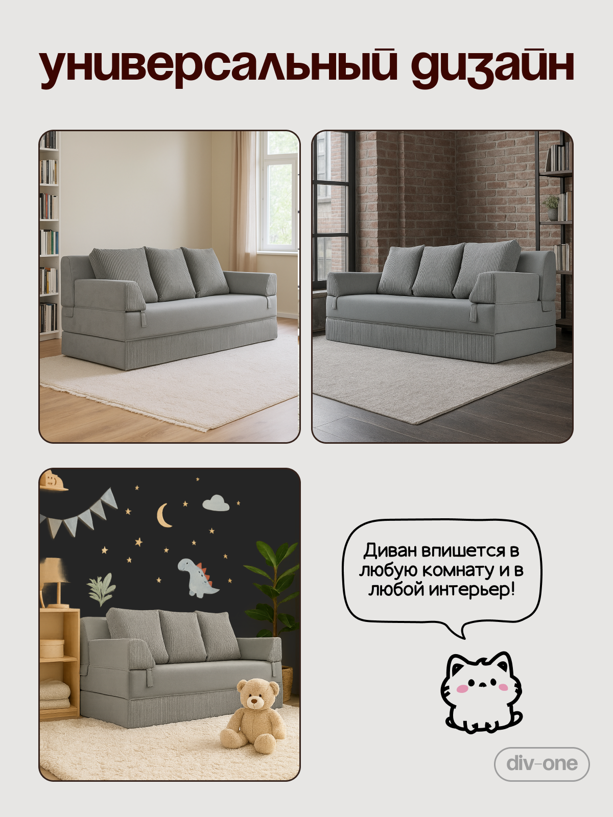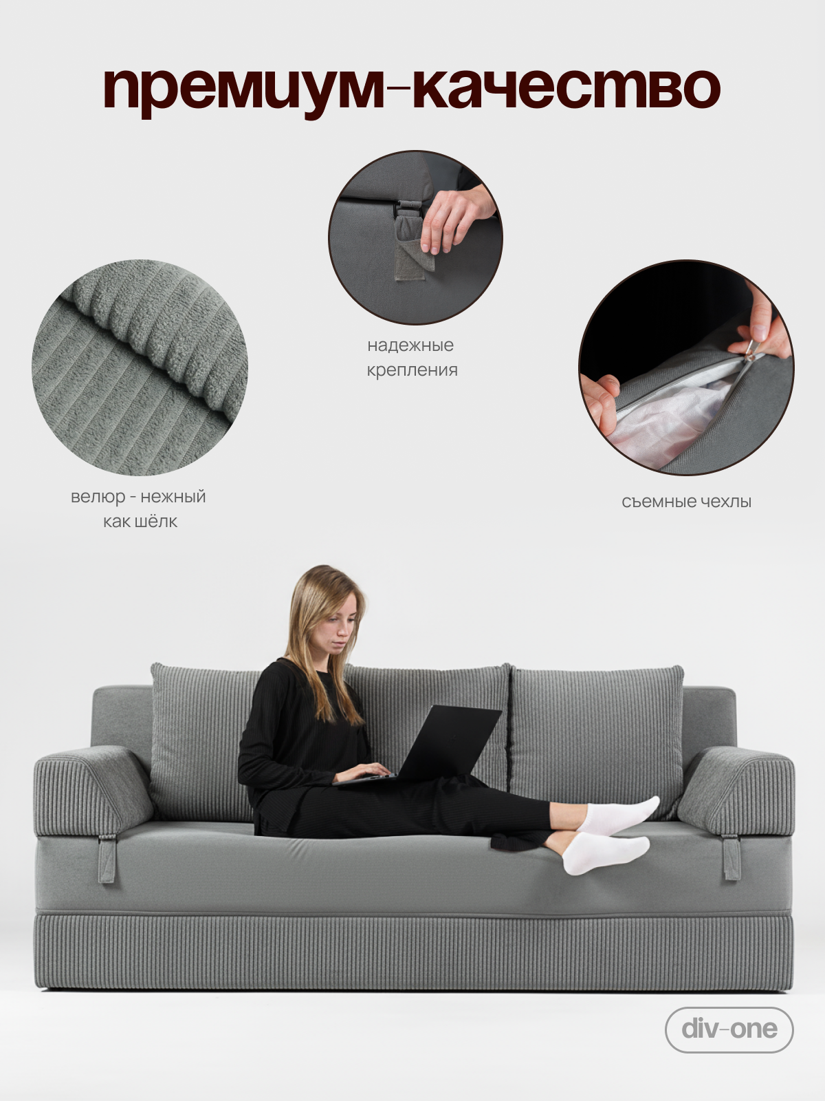 Диапазон возможностей делает его идеальным для малогабаритных квартир, где важна каждая деталь. Использование высококачественного микровелюра в обивке обеспечивает долговечность и легкость в очищении, что особенно важно для семей с детьми, подростками и домашними животными. Антивандальное покрытие защитит диван от повреждений, а его спальное место создано для комфортного отдыха, обеспечивая необходимую поддержку благодаря высокоэластичному пенополиуретану. Наружный чехол легко снимается для чистки благодаря застежкам-молниям.