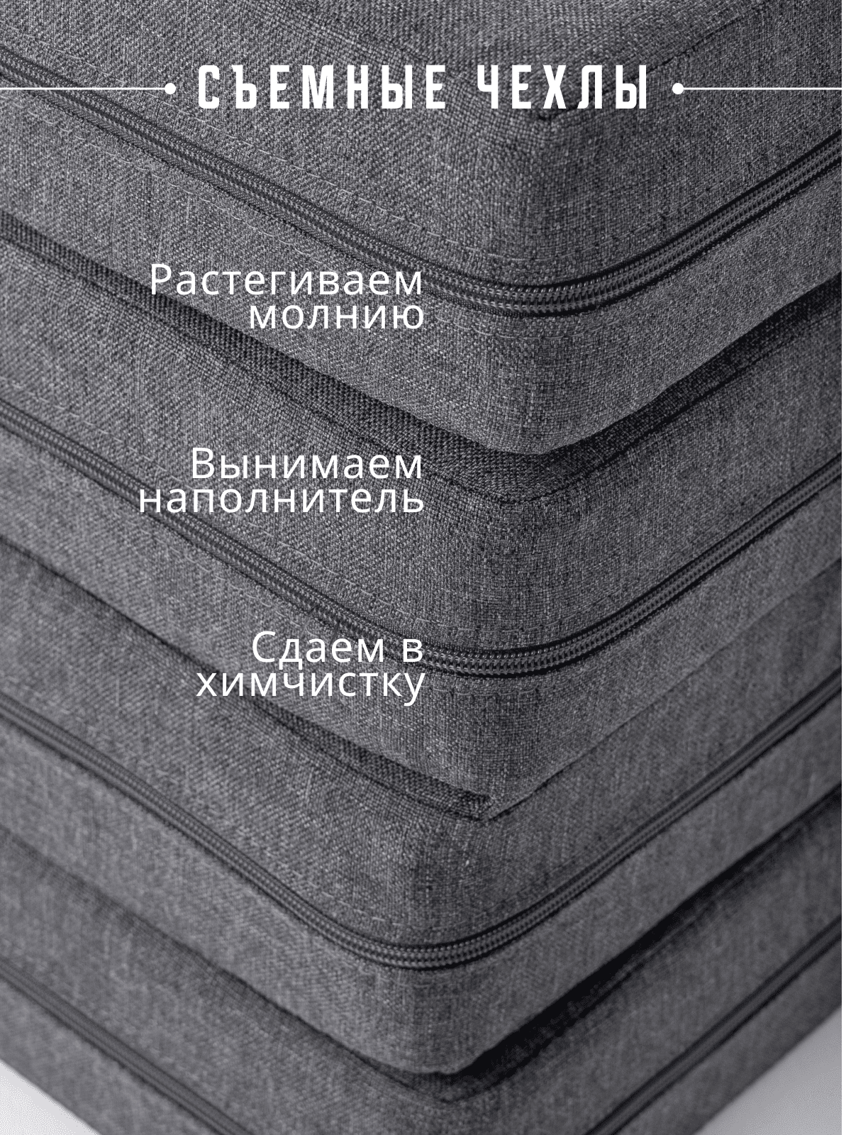 Износостойкая рогожка и съемный чехол выдерживают до 50 000 циклов (мартиндейл), что говорит о долговечности — изделие прекрасно подходит для ежедневного активного использования, максимальная нагрузка составляет 100 кг. Мягкий материал позволяет использовать пуф в роли спального место для гостей.
