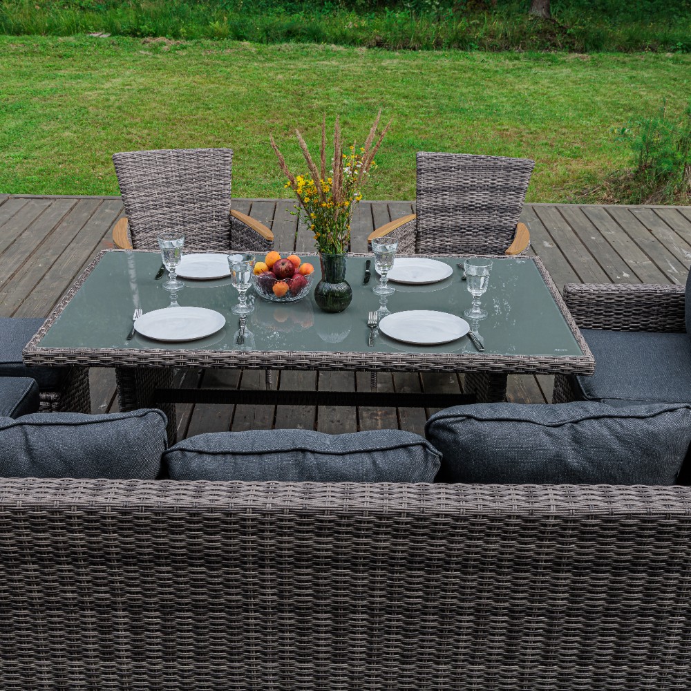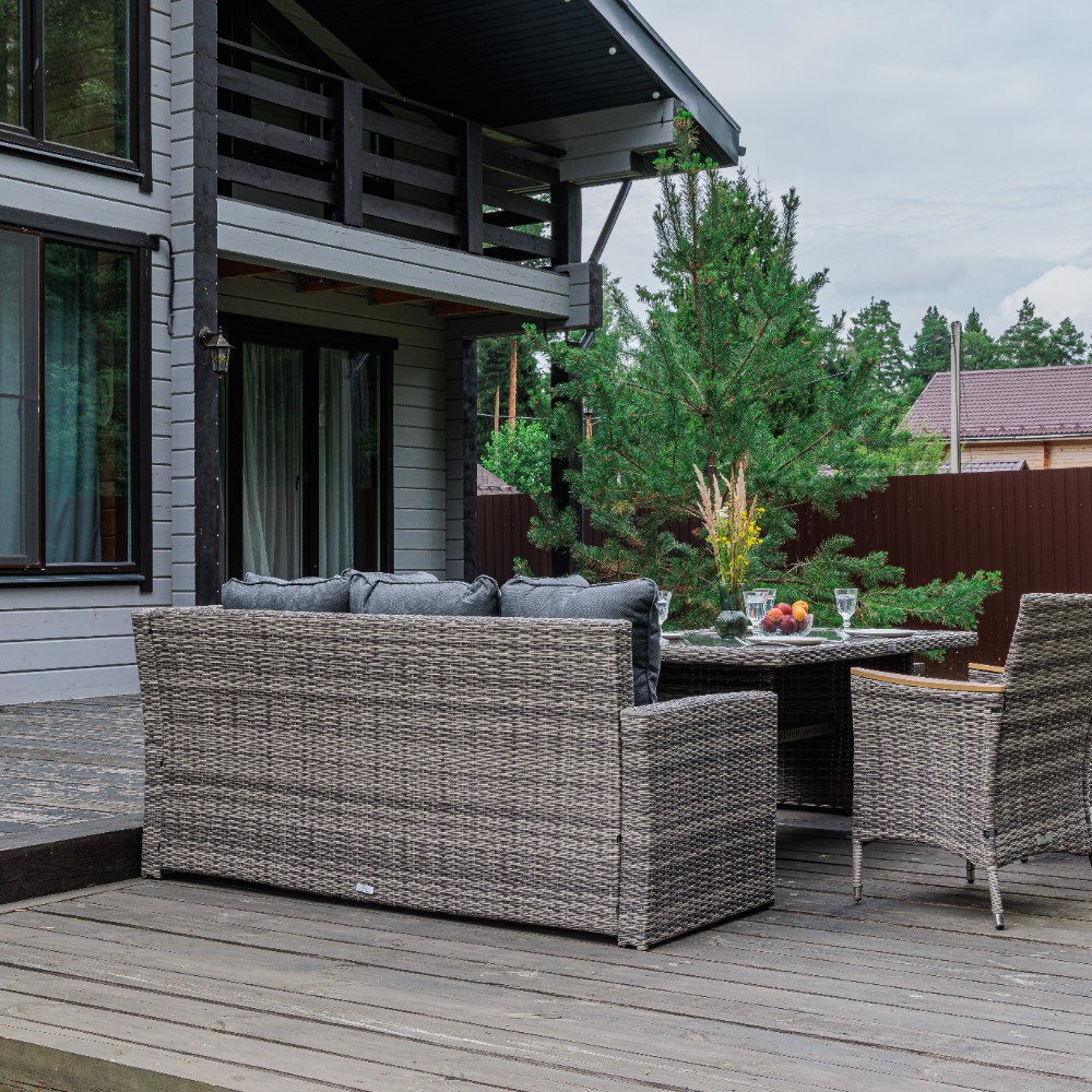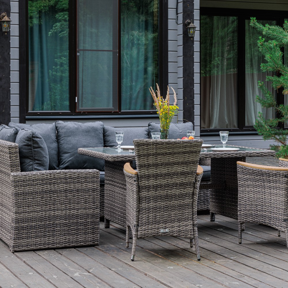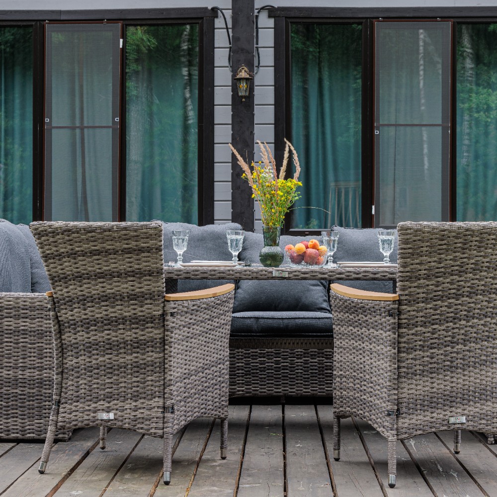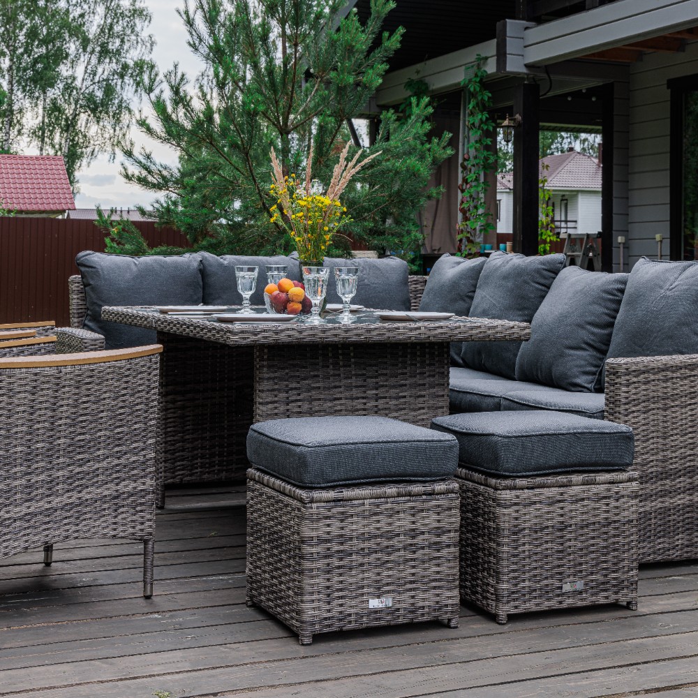Материал комплекта - искусственный ротанг (ручного плетения)