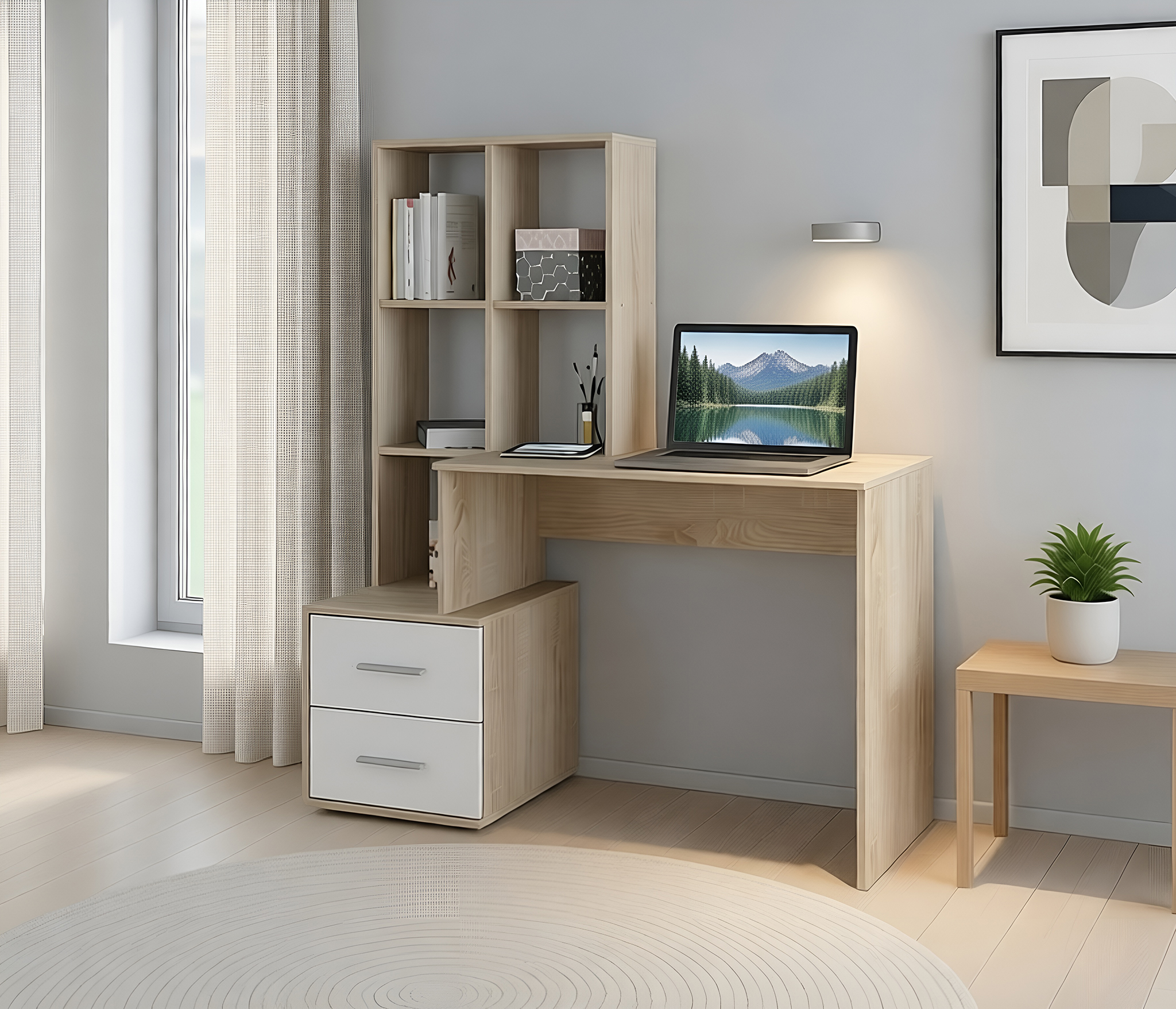 Габаритные размеры – ширина 78 см, высота 176 см и глубина 44 см. Конструктивно стеллаж состоит из нескольких вместительных открытых полок и из отделения с непрозрачными дверцами.Модель производится из современного материала КДСП. Отделка комбинированная – корпус в цвете «Дуб Сонома», фасадные поверхности белые.