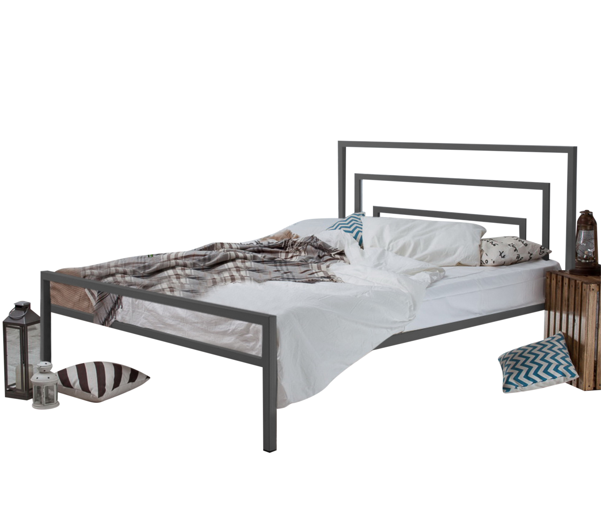 Металлическая кровать Атланта прекрасно сочетается с любыми цветами и фактурами отделки и другими предметами интерьера, гармонично дополняя общий ансамбль.