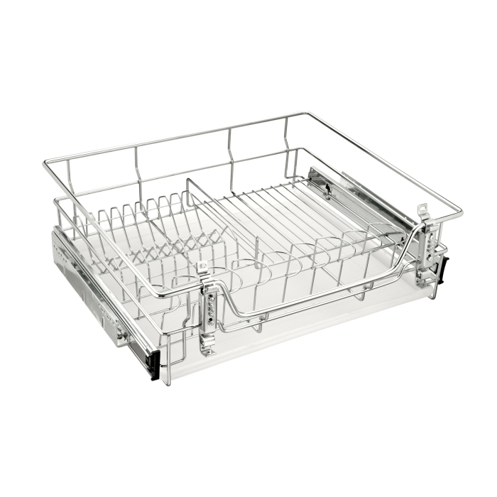 СУШКА ВЫКАТНАЯ С ПОДДОНОМ В НИЖНЮЮ БАЗУ 600 MM С ФАСАДН КРЕПЛЕНИЕМ (564x440x170ММ). Выкатная корзина-сушилка для посуды. Оснащена поддоном, удерживающим стекающую влагу, что позволяет располагать в ней посуду, даже не дожидаясь её полного высыхания, максимально рационально использовать внутреннее пространство кухонного гарнитура