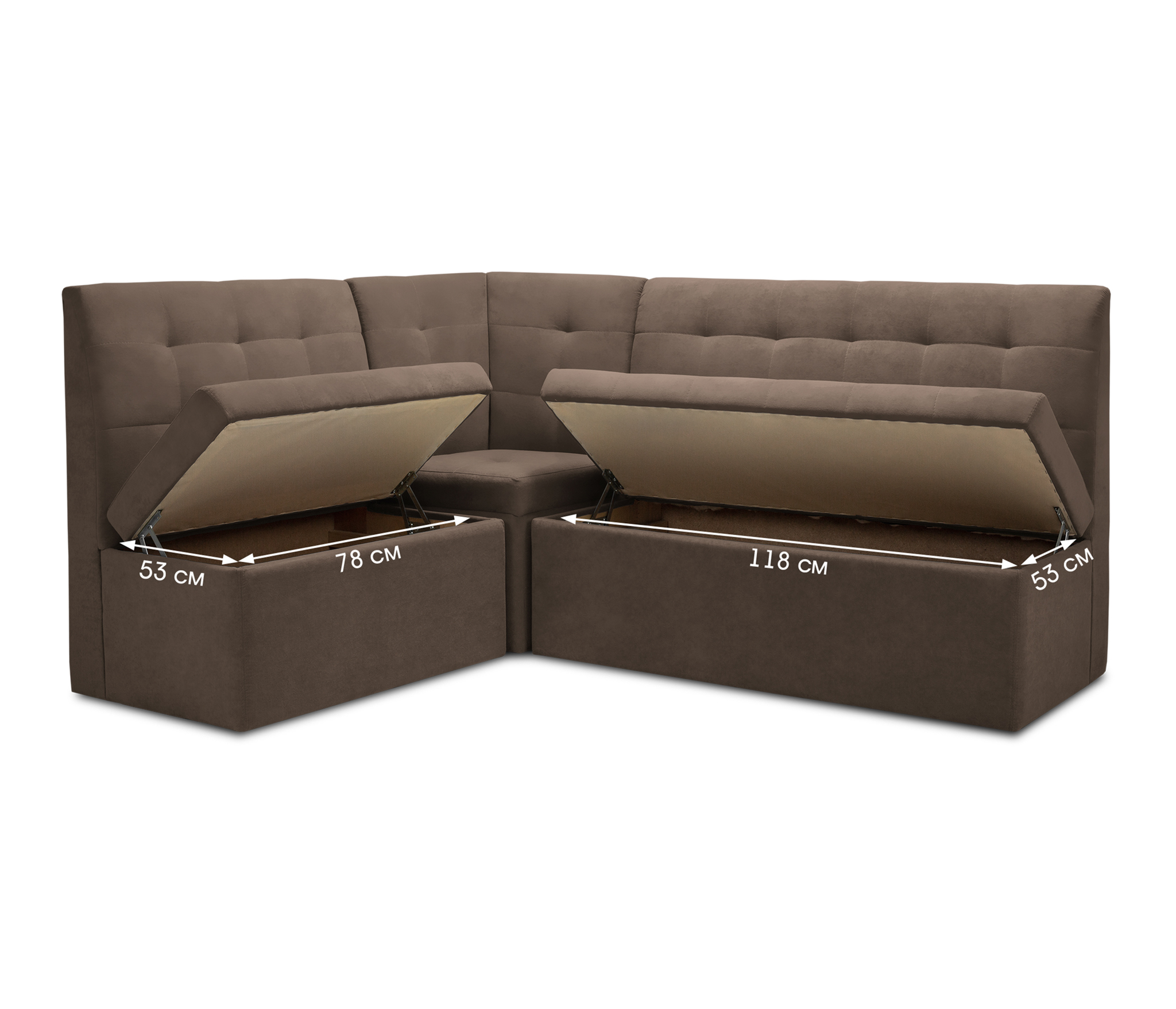 Уголок просто супер.Очень стильный,насыщенный цвет(темно коричневый)на картинке он светлее,в жизне он даже лучше смотрится .Вмеру мягкий.Есть отделения для хранения.При доставке он был уже собран 3 части .