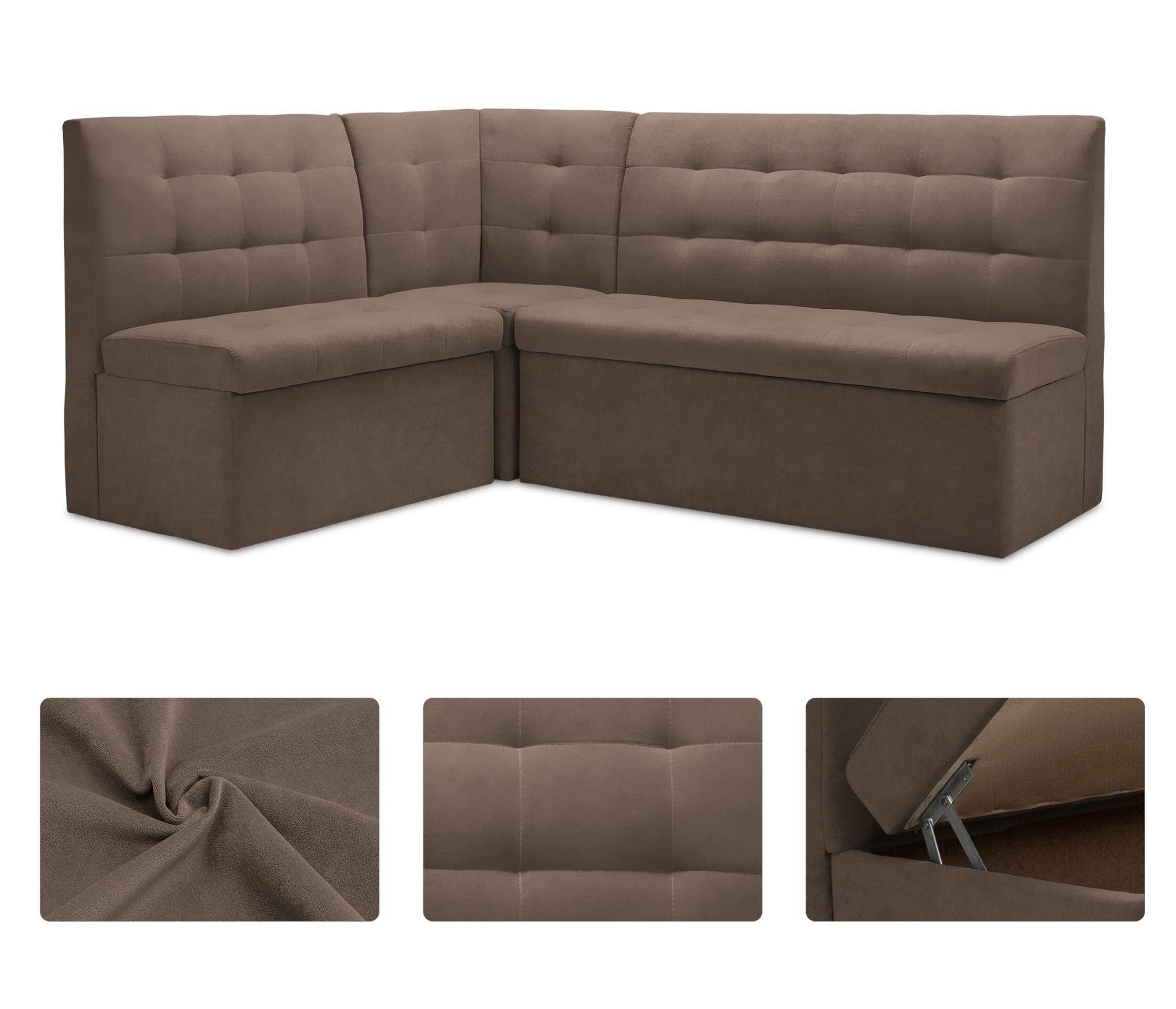 Диван кухонный угловой Омега, микровелюр (Мокко) Код I0000108147