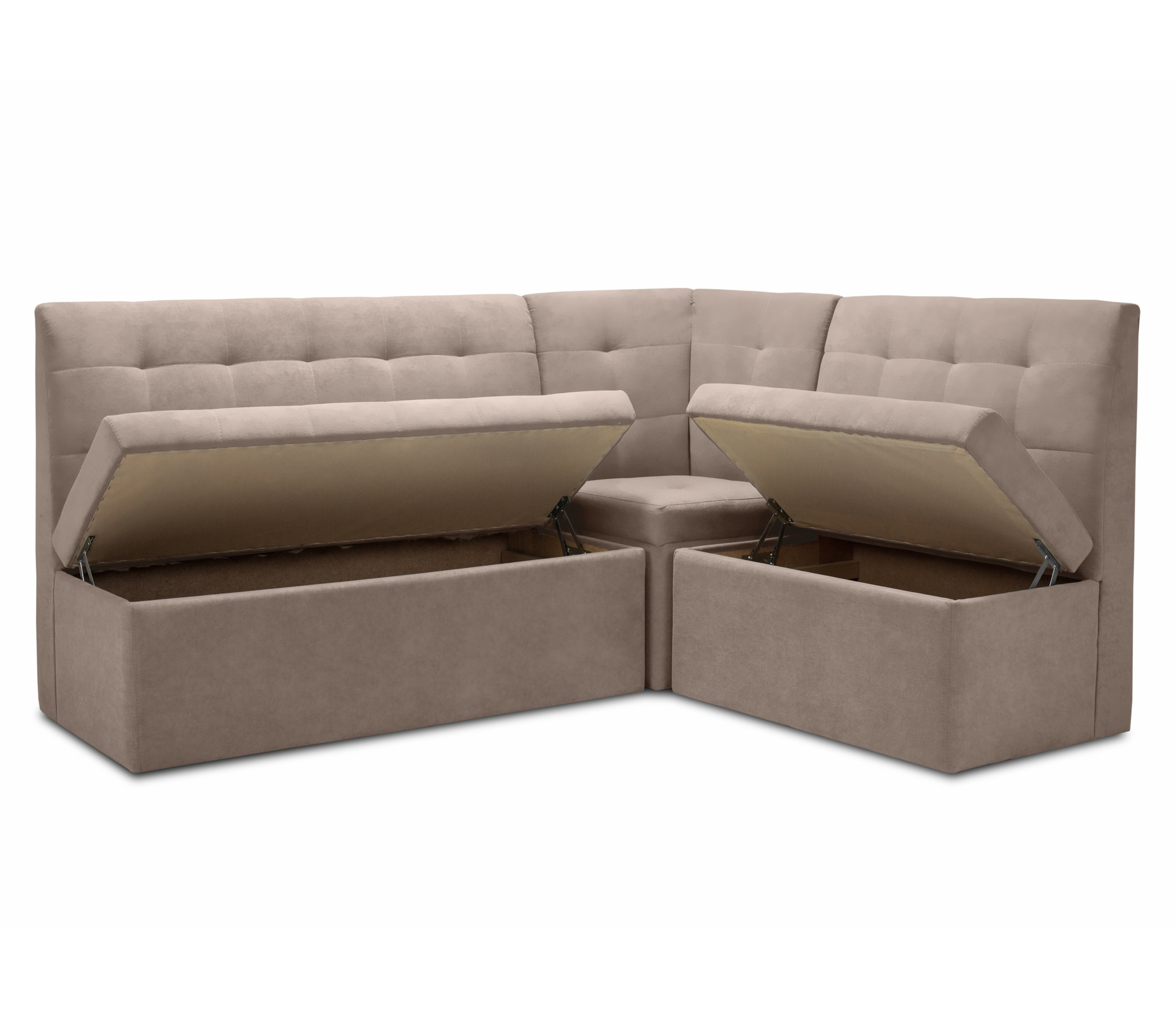 Кухонный уголок состоит из 3 модулей, что дает возможность расставить их как необходимо вам.