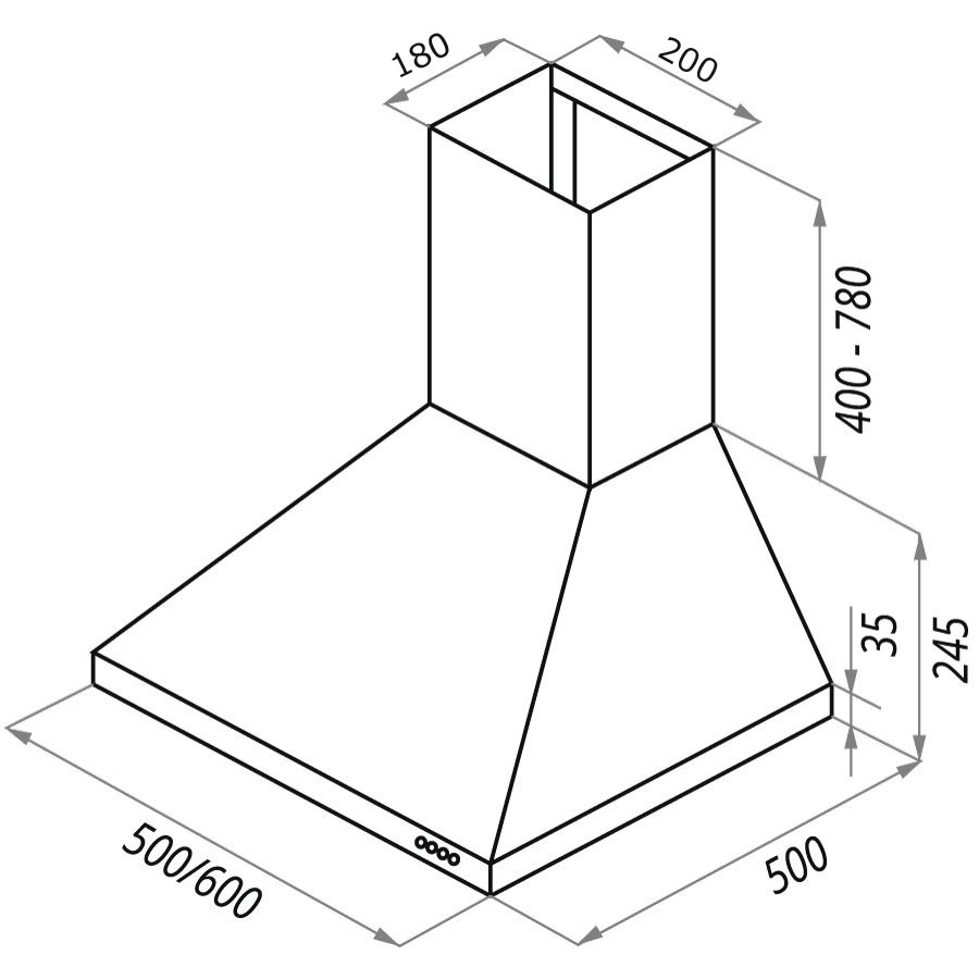Вытяжка оснащена удобным кнопочным управлением 3-мя скоростями.