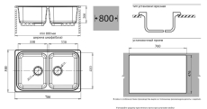 Общий размер мойки: 780х496
