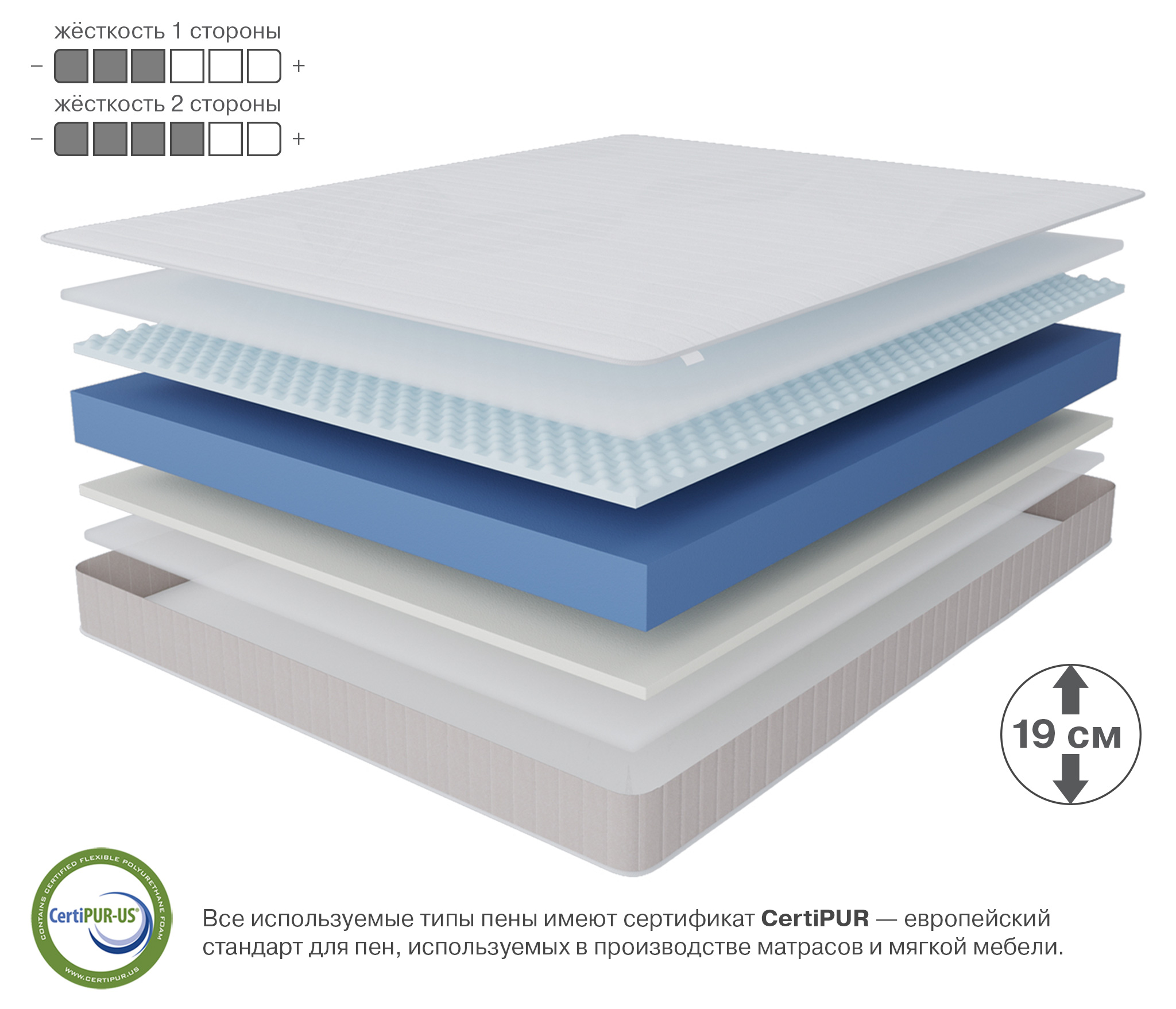 Матрасы на основе пружинных блоков, уверенно сдают свои позиции, им на замену приходят современные беспружинные модели, в основе которых лежат пены, пористая структура которых гораздо более точно способна повторять контуры тела и тем самым уменьшать обратное давление, уменьшая риск пережатия сосудов, что в свою очередь улучшает кровообращение. Данная модель сделана с применением двух разных по своей структуре пен, одна из которых обладает эффектом памяти, который работает от тепла выделяемого телом, т.е. при воздействие тепла пена становится мягче и вы в нее проваливаетесь, при этом части на которые тепла выделяется меньше, сохраняют свои прежние размеры, данное свойство позволяет добиться эффекта "объятия". При этом пена мемори имеет ячеистую структуру, которая позволяет создавать эффект микромассажа, что еще больше увеличивает кровоснабжение. Вторая сторона матраса более жесткая и упругая, что позволит менять степень жесткости спального места по своему усмотрению. При выборе матраса следует помнить о том, что любой матрас не отвечает за правильность положения головы и шеи, их здоровье зависит от правильно подобранной ортопедической подушки. Для увеличения срока службы матраса рекомендуется его использование с защитным чехлом AquaStop. Поставляется скрученным в рулон, что существенно упрощает его транспортировку, ведь в таком виде, матрас войдет почти в любую легковую машину. |