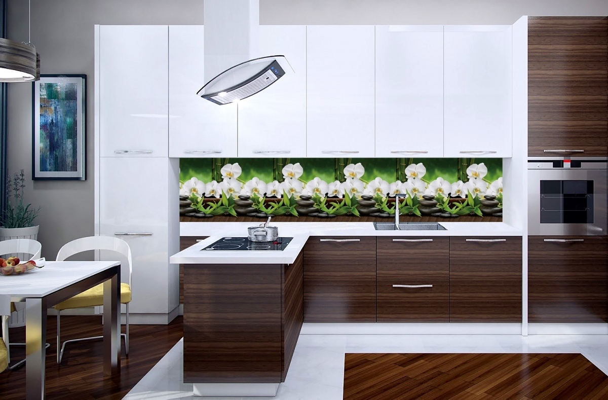 Кухонный фартук Белая орхидея 3000x600x1.5 мм глянец Код I0000194727