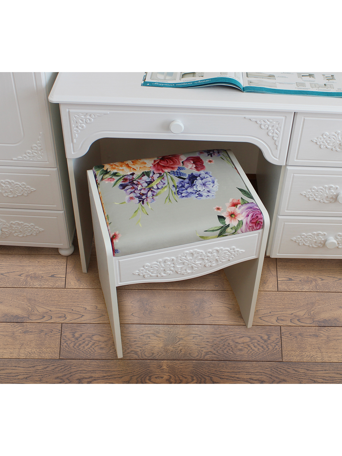 «Ассоль» - мягкий мерцающий глянец и эксклюзивный узор, повторяющийся на фасадах всех модулей идеален для создания нежного уютного интерьера спальни, гостиной, детской, прихожей.