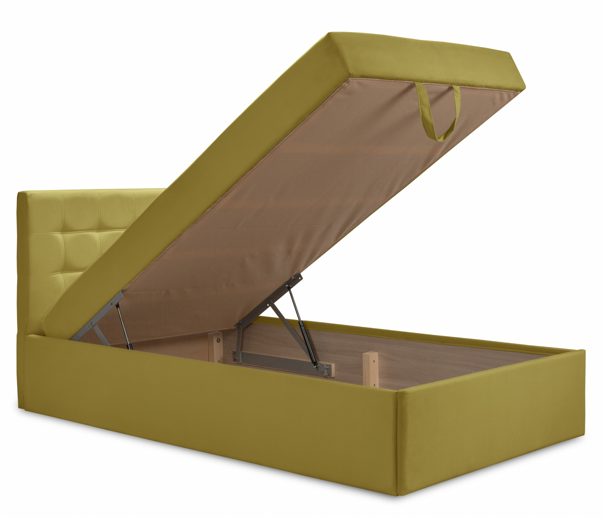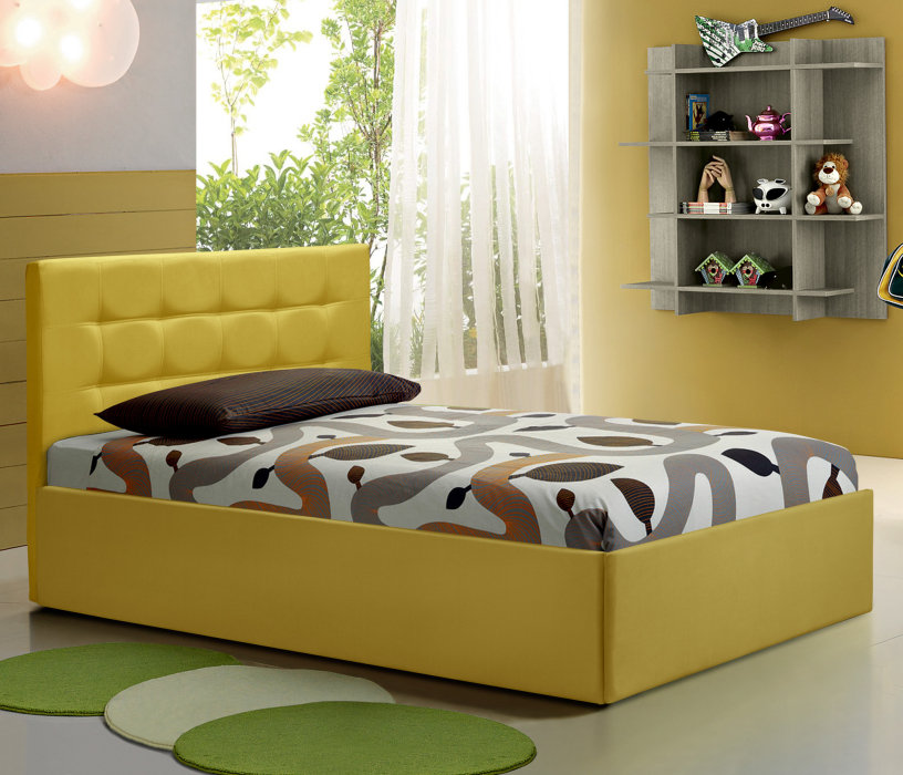 Тахта оснащена подъемным механизмом, что облегчает доступ к большому ящику для хранения.
