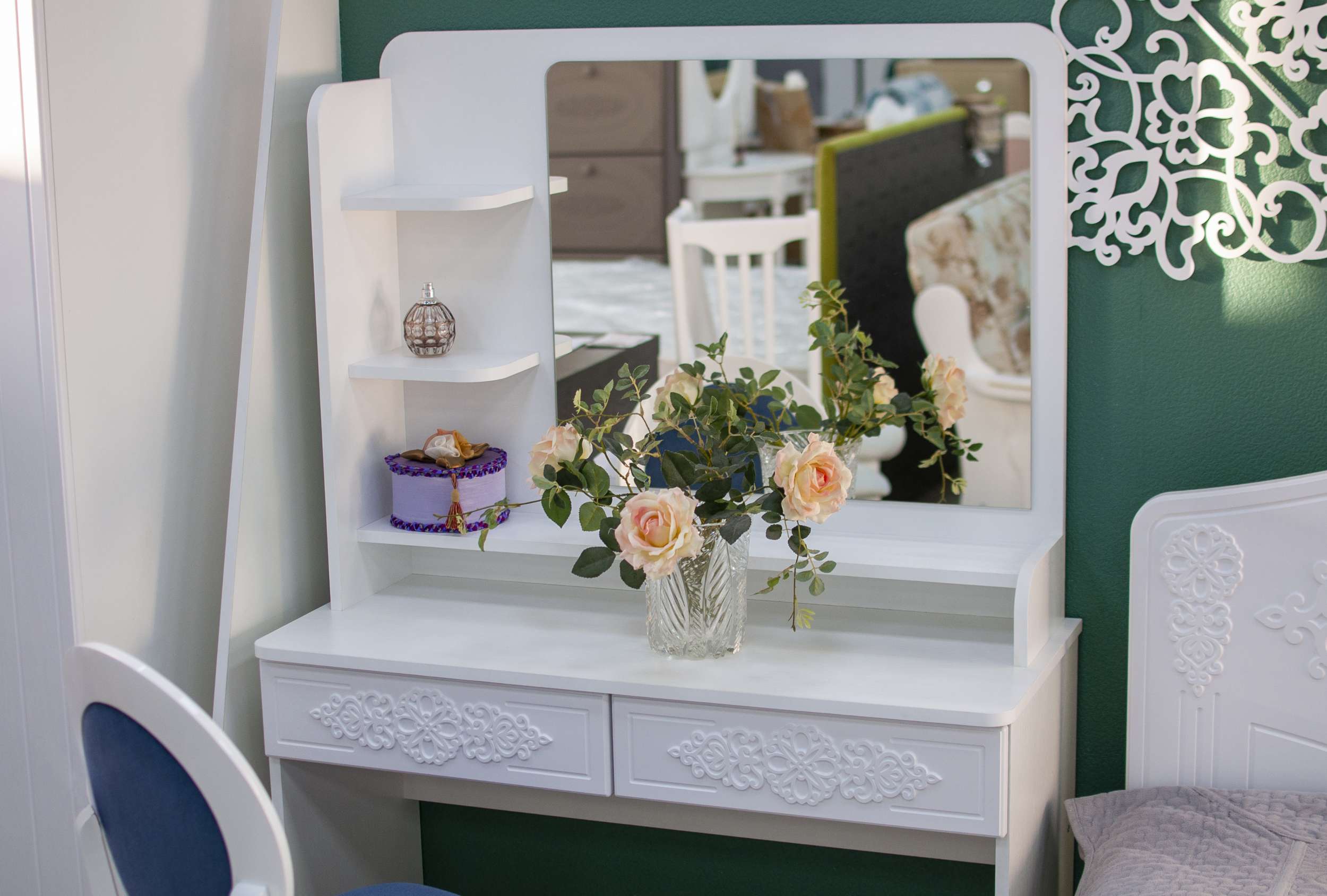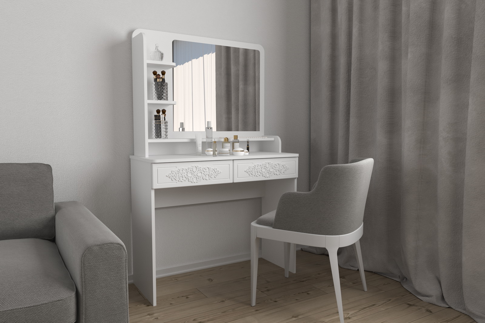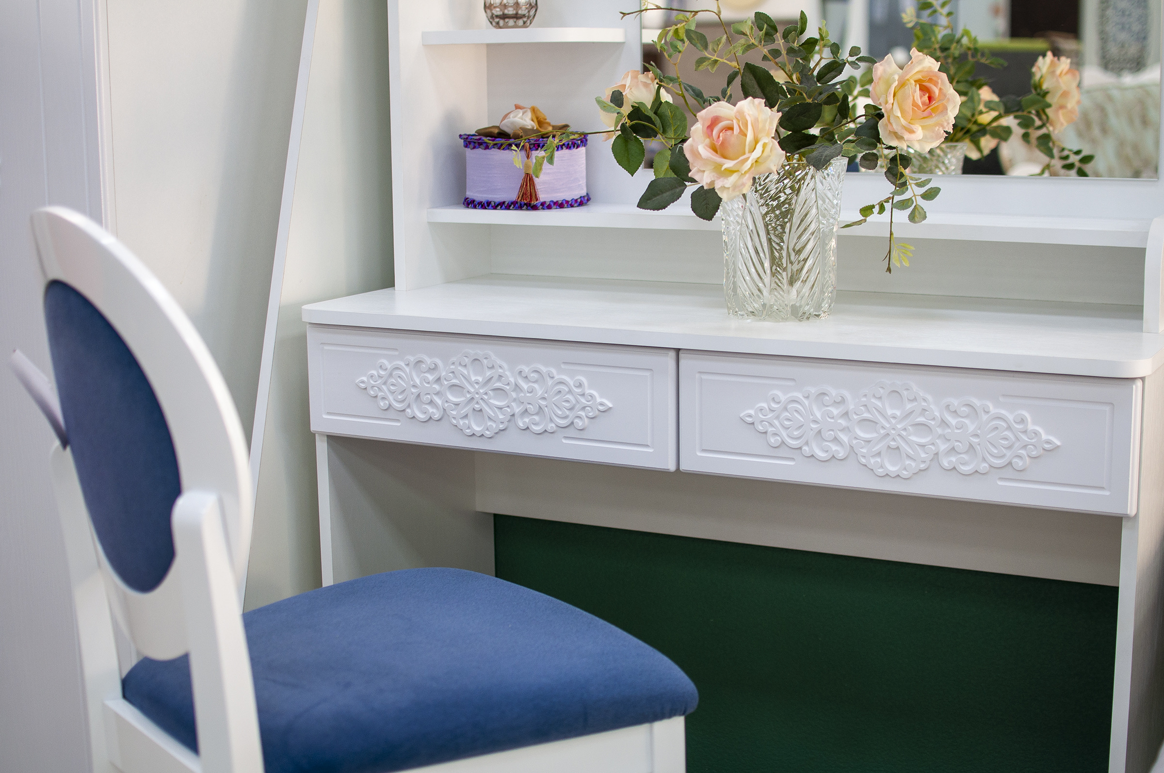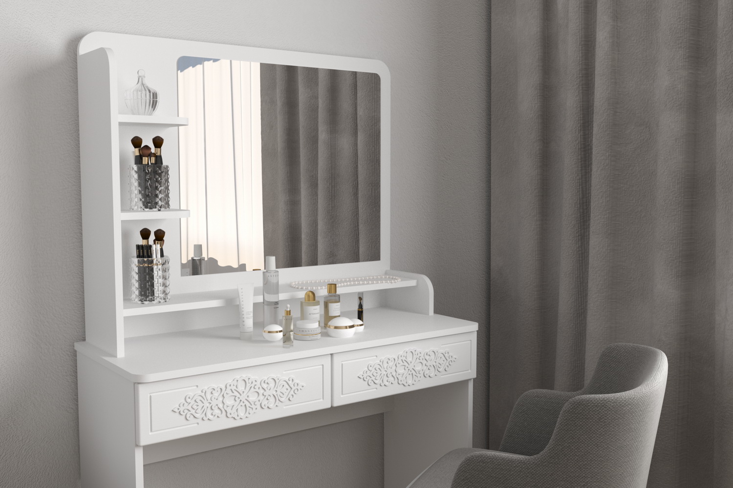 Туалетный столик – неотъемлемая часть спальни или женской комнаты. Каждая девочка, девушка или дама хочет иметь собственное пространство, свой уголок красоты, для того чтобы привести себя в порядок, нанести макияж, удобно и компактно расставить свою косметику и парфюмерию, аккуратно сложить украшения и аксессуары.