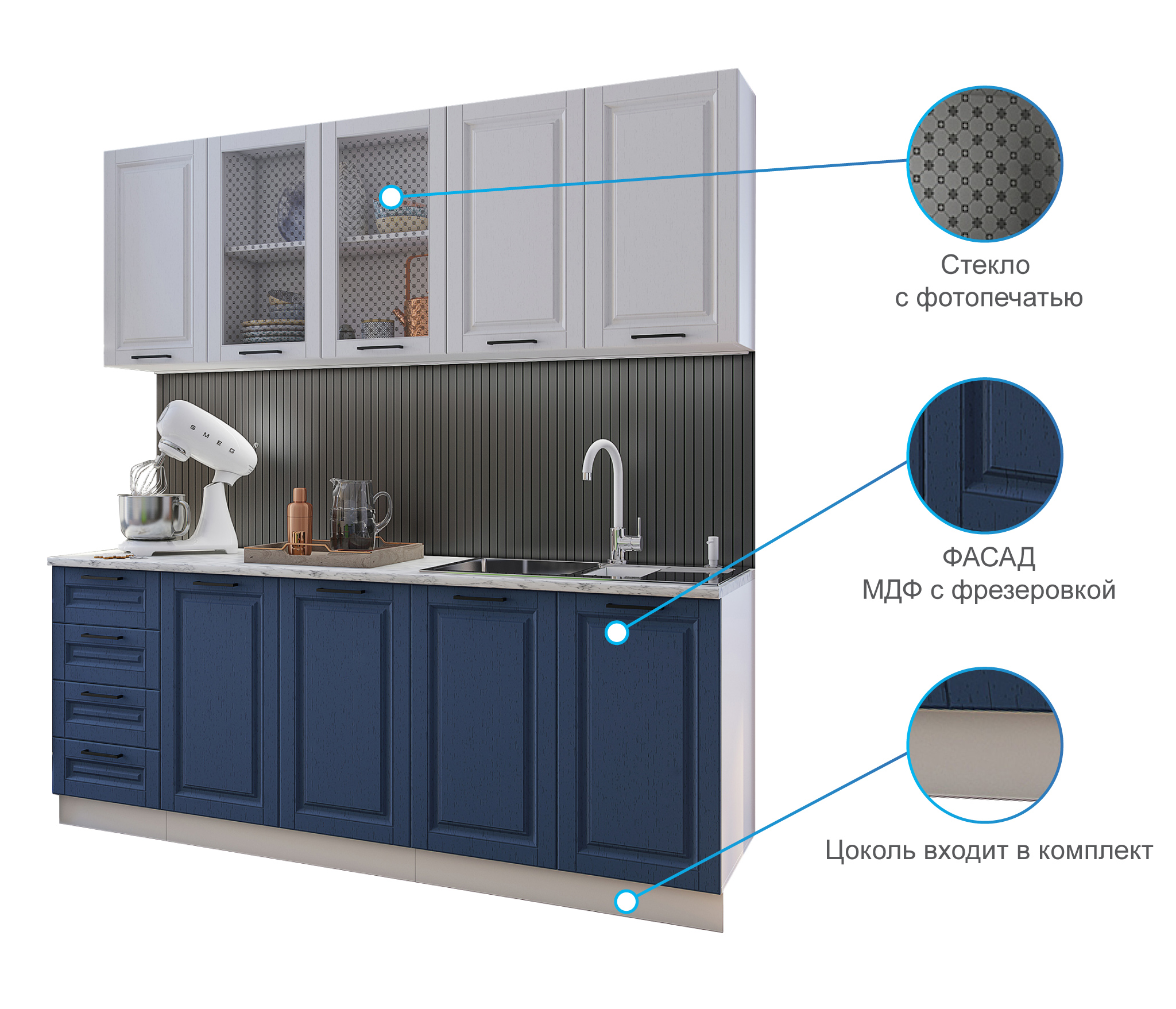 Отзывы о Столплит Кухня Вита 2,0 м Белый/Индиго МДФ Белый/Синий