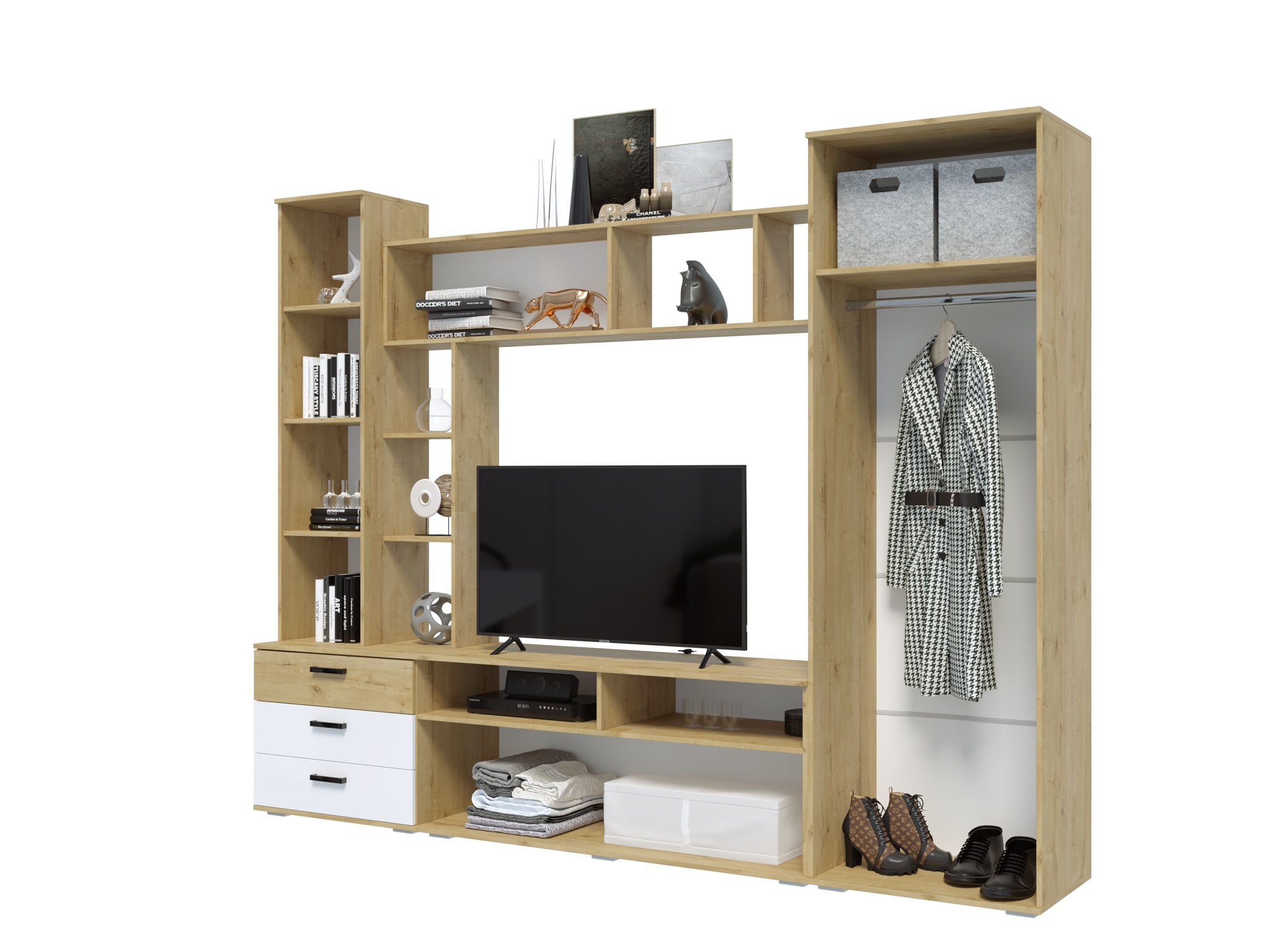 большая ниша под тв много полок